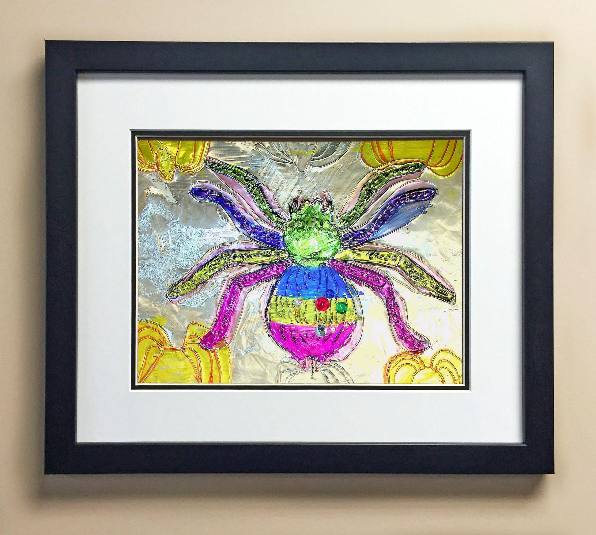 Included with the purchase is the Students Artwork, Frame, double matboard, shatter proof plexiglass, and a ready to hang backerboard with turnbuttons