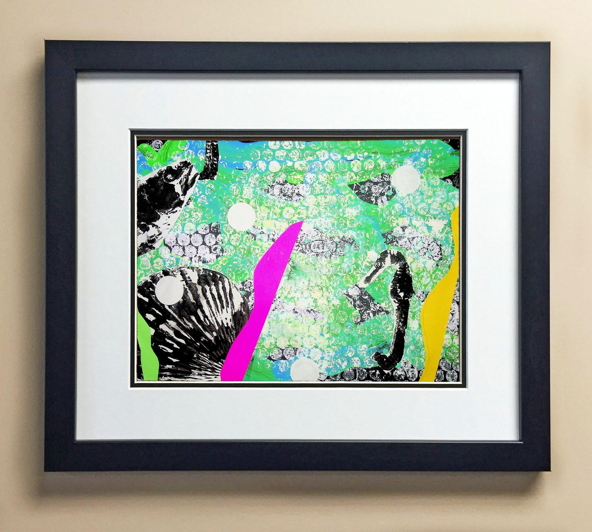 Included with the purchase is the Students Artwork, Frame, double matboard, shatter proof plexiglass, and a ready to hang backerboard with turnbuttons