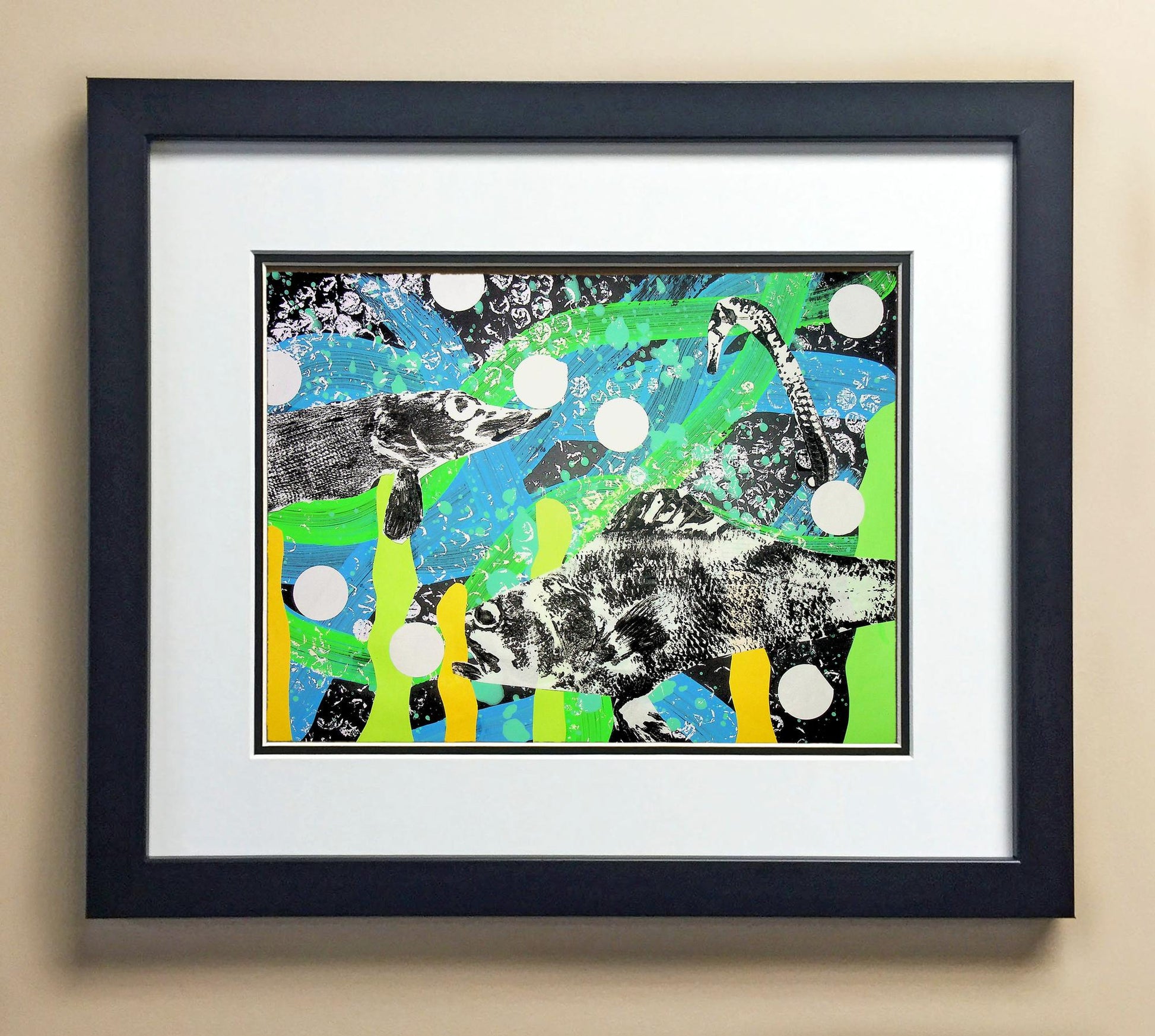Included with the purchase is the Students Artwork, Frame, double matboard, shatter proof plexiglass, and a ready to hang backerboard with turnbuttons