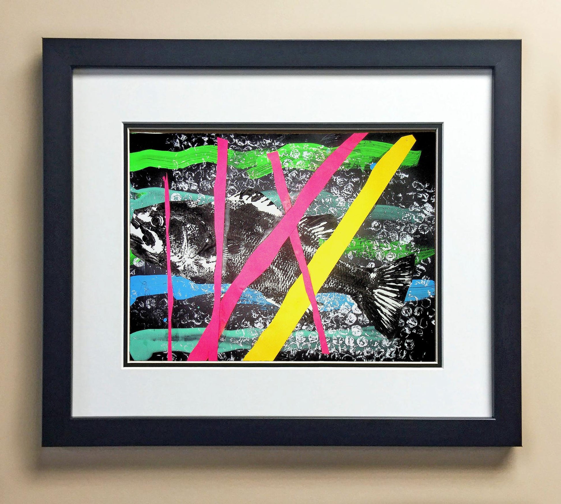 Included with the purchase is the Students Artwork, Frame, double matboard, shatter proof plexiglass, and a ready to hang backerboard with turnbuttons