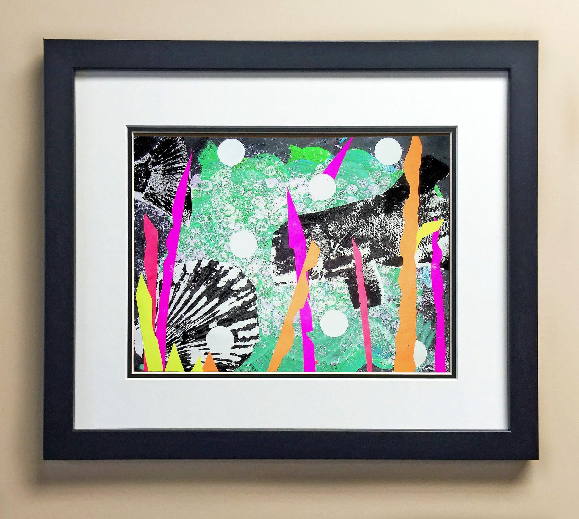 Included with the purchase is the Students Artwork, Frame, double matboard, shatter proof plexiglass, and a ready to hang backerboard with turnbuttons