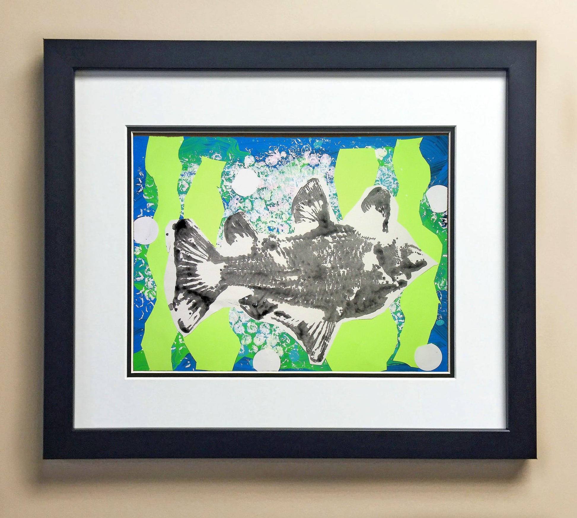 Included with the purchase is the Students Artwork, Frame, double matboard, shatter proof plexiglass, and a ready to hang backerboard with turnbuttons