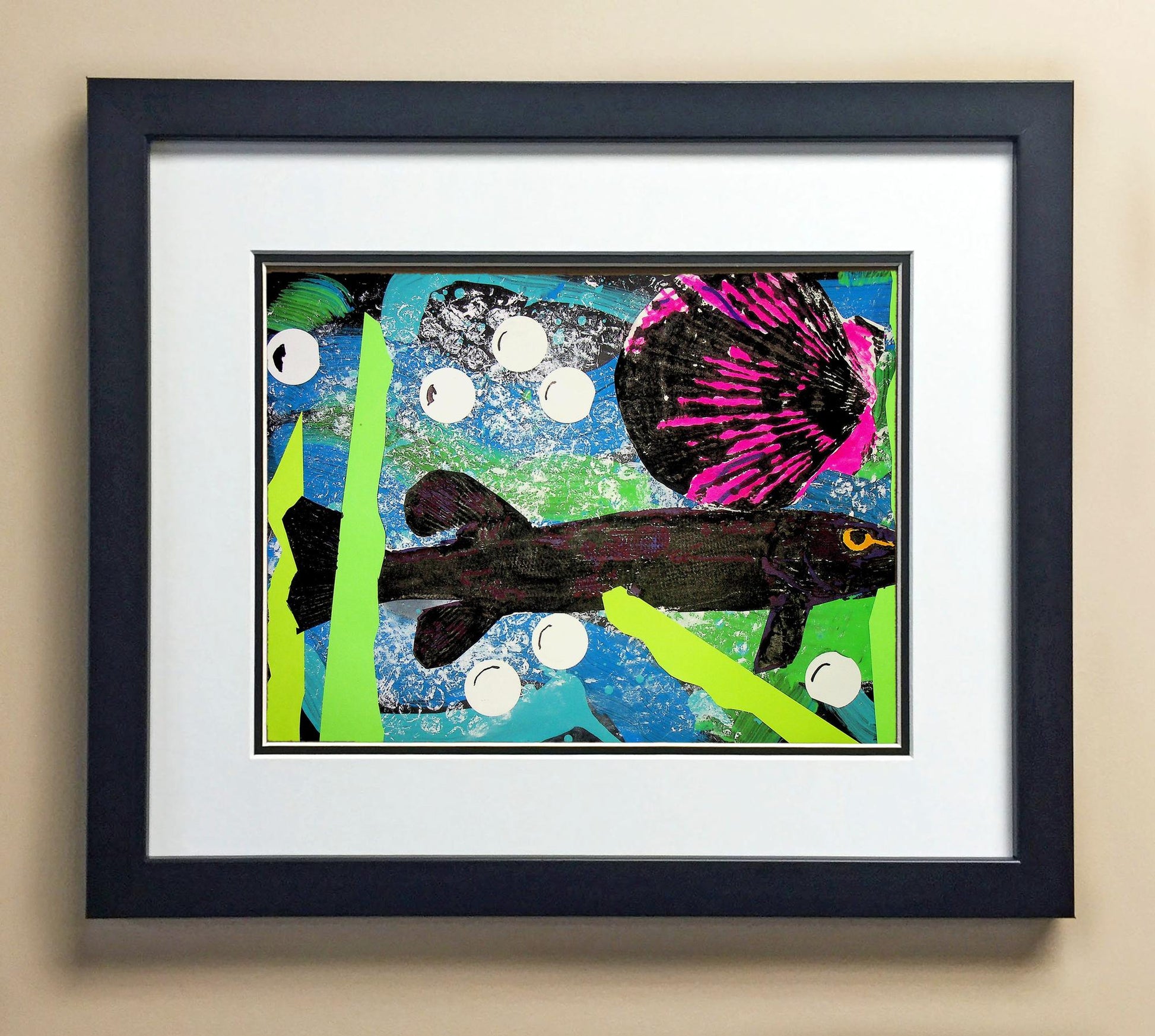 Included with the purchase is the Students Artwork, Frame, double matboard, shatter proof plexiglass, and a ready to hang backerboard with turnbuttons