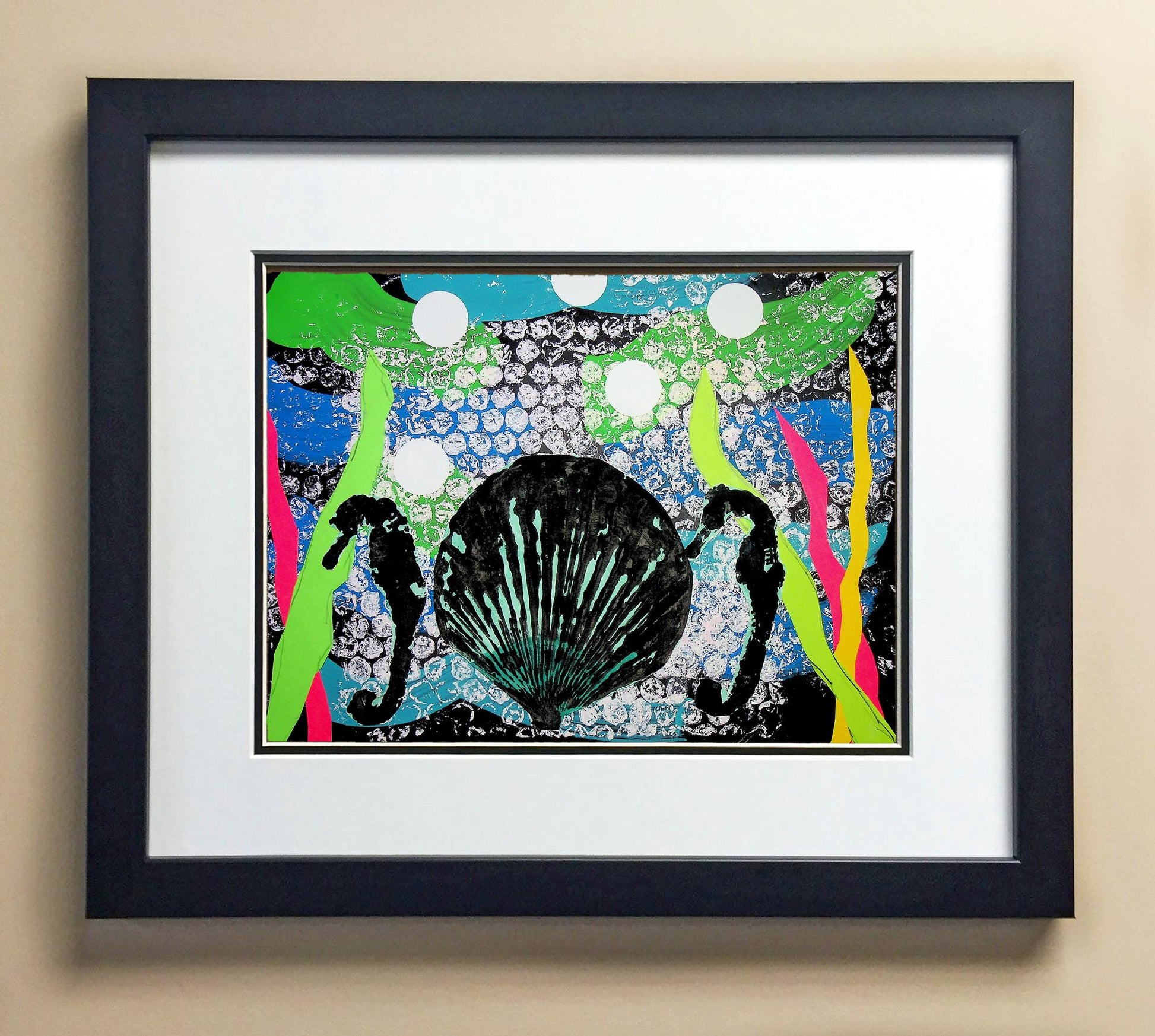 Included with the purchase is the Students Artwork, Frame, double matboard, shatter proof plexiglass, and a ready to hang backerboard with turnbuttons