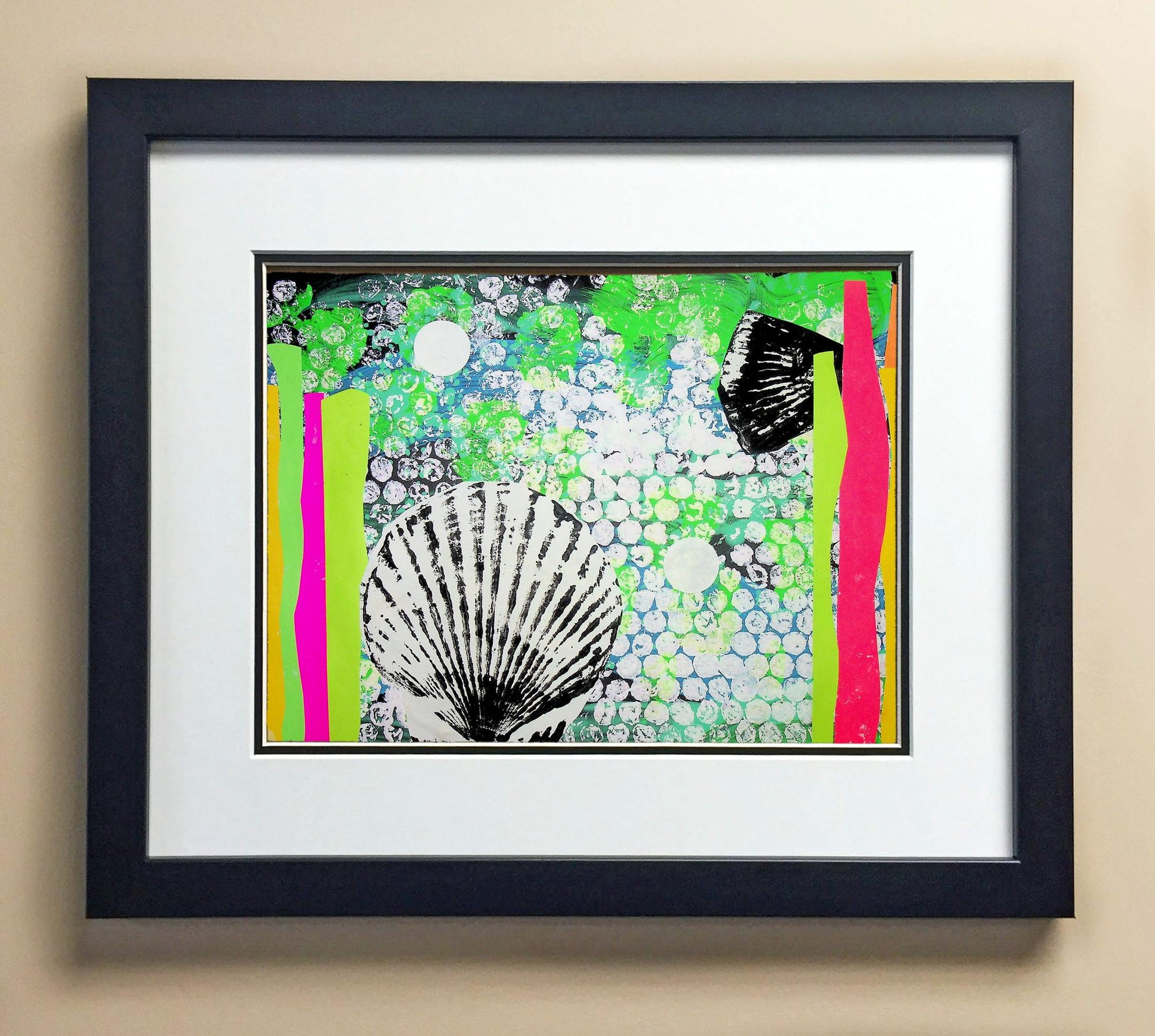 Included with the purchase is the Students Artwork, Frame, double matboard, shatter proof plexiglass, and a ready to hang backerboard with turnbuttons