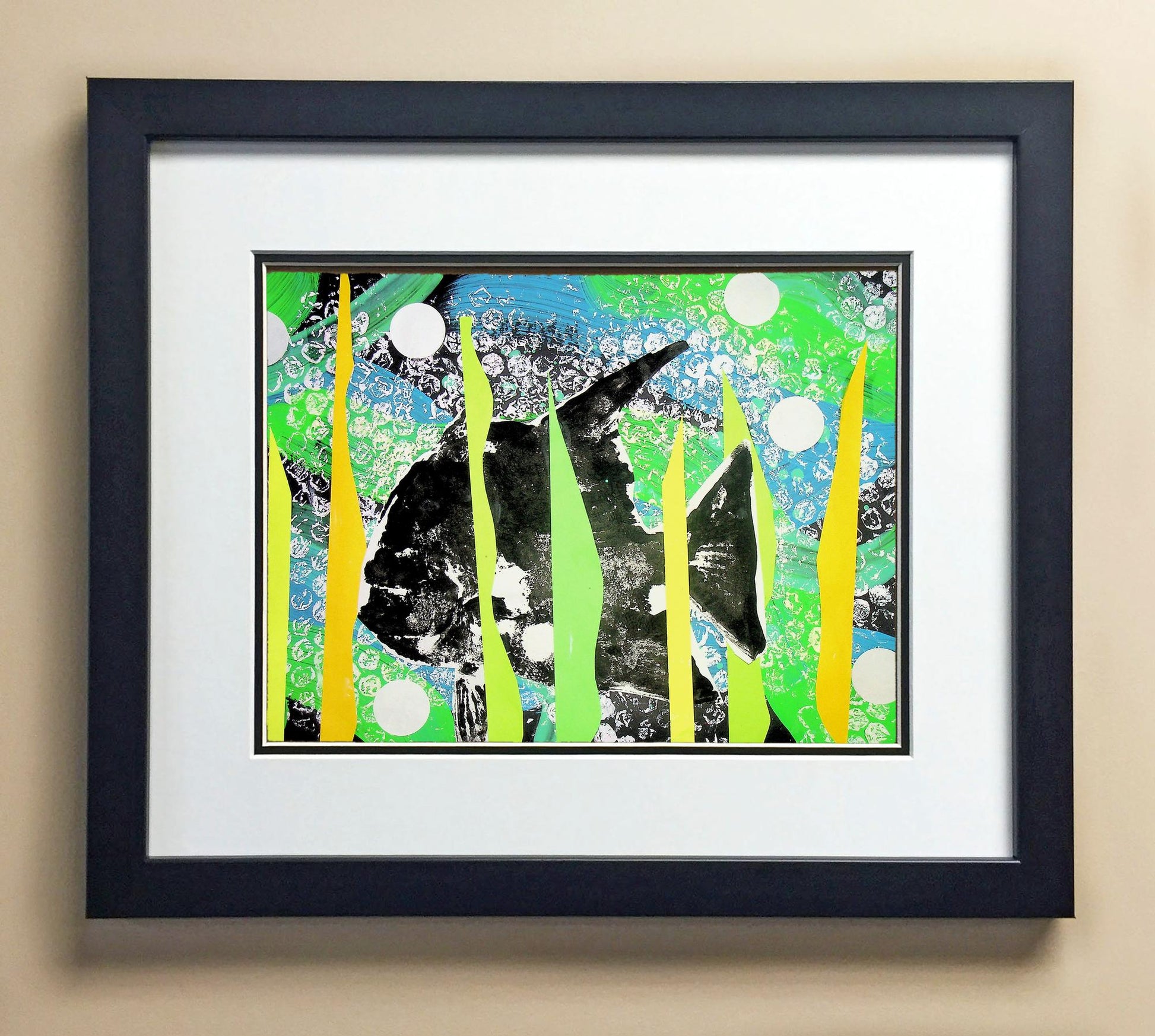 Included with the purchase is the Students Artwork, Frame, double matboard, shatter proof plexiglass, and a ready to hang backerboard with turnbuttons