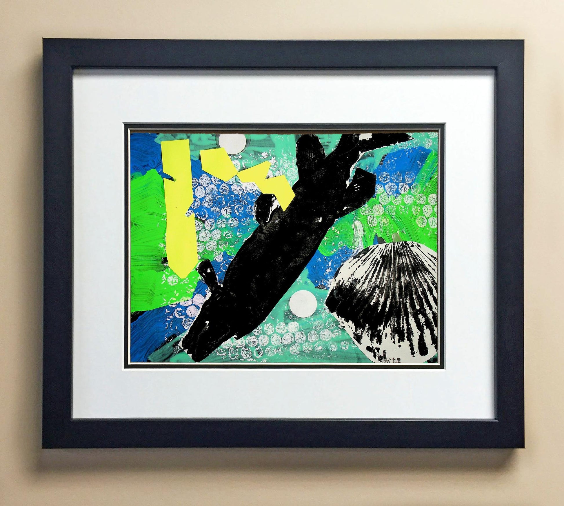 Included with the purchase is the Students Artwork, Frame, double matboard, shatter proof plexiglass, and a ready to hang backerboard with turnbuttons