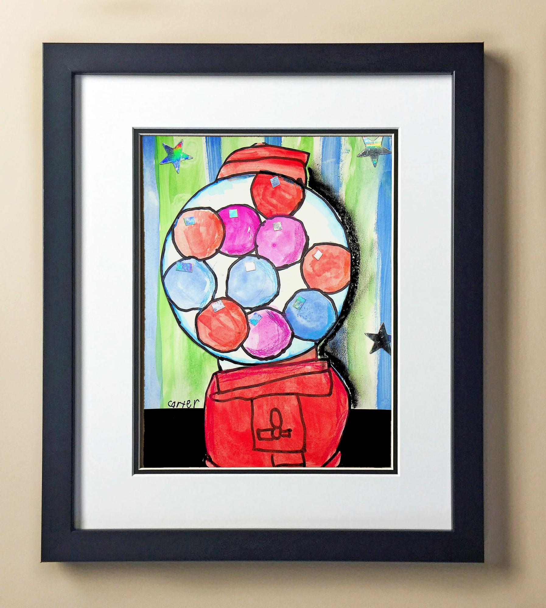 Included with the purchase is the Students Artwork, Frame, double matboard, shatter proof plexiglass, and a ready to hang backerboard with turnbuttons