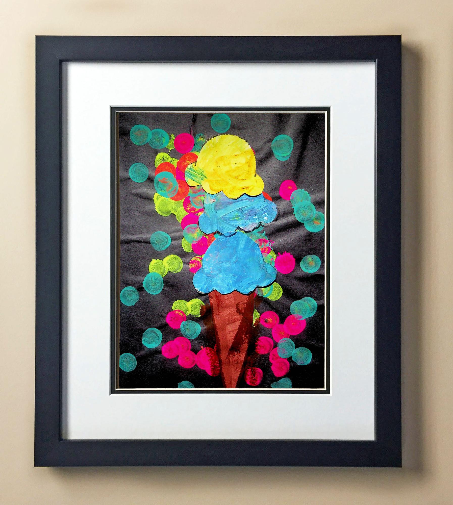 Included with the purchase is the Students Artwork, Frame, double matboard, shatter proof plexiglass, and a ready to hang backerboard with turnbuttons