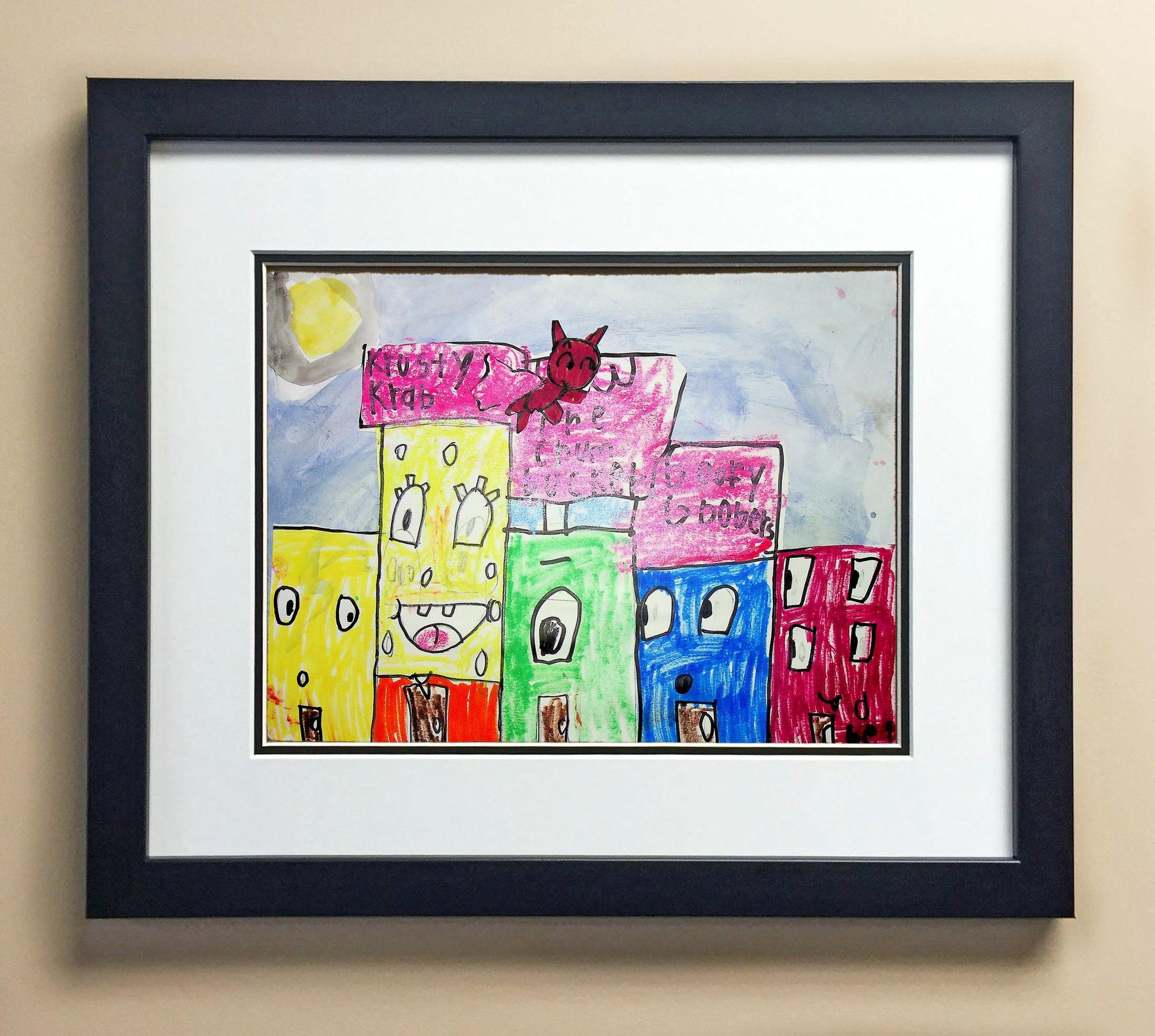 Included with the purchase is the Students Artwork, Frame, double matboard, shatter proof plexiglass, and a ready to hang backerboard with turnbuttons