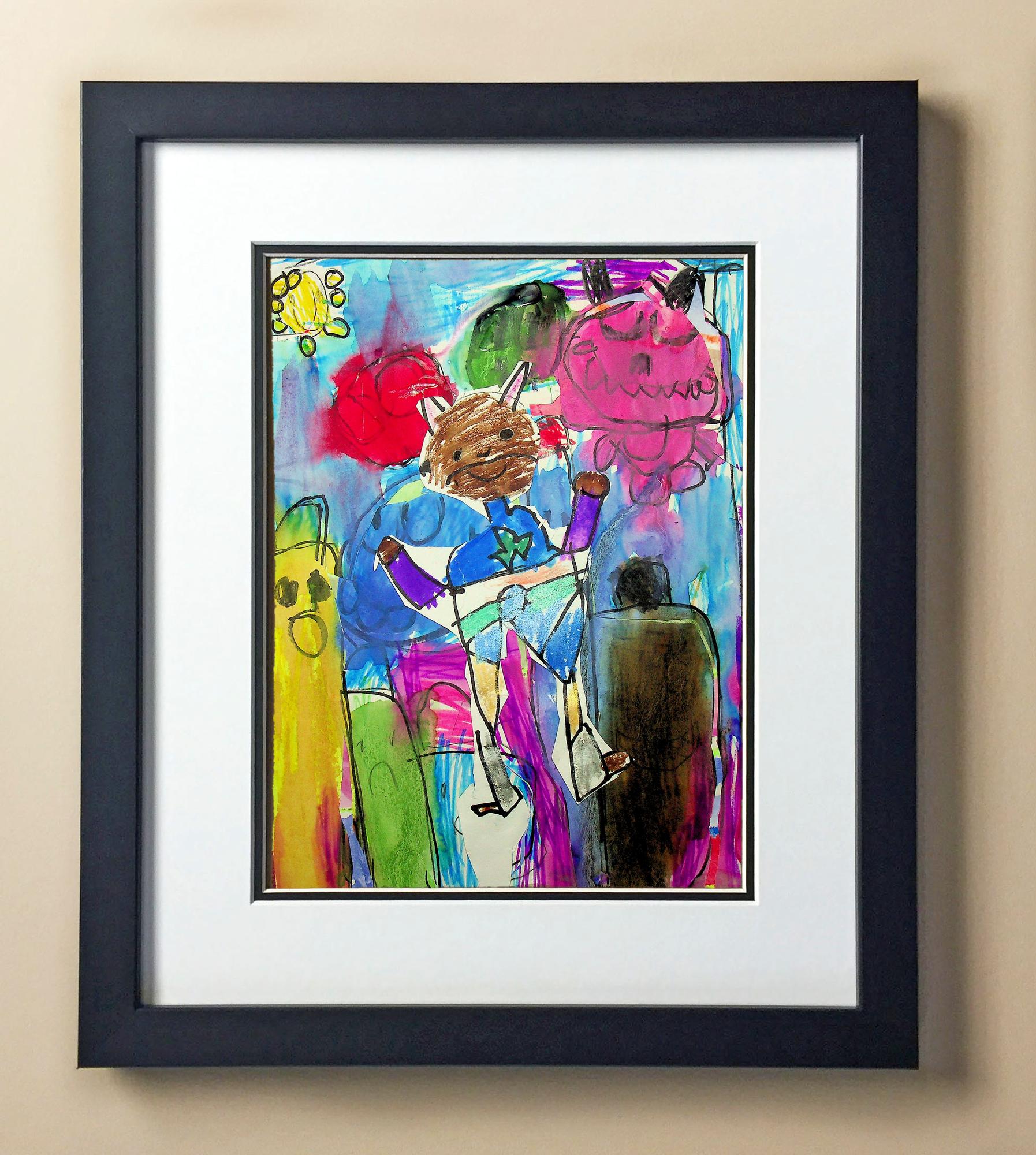 Included with the purchase is the Students Artwork, Frame, double matboard, shatter proof plexiglass, and a ready to hang backerboard with turnbuttons