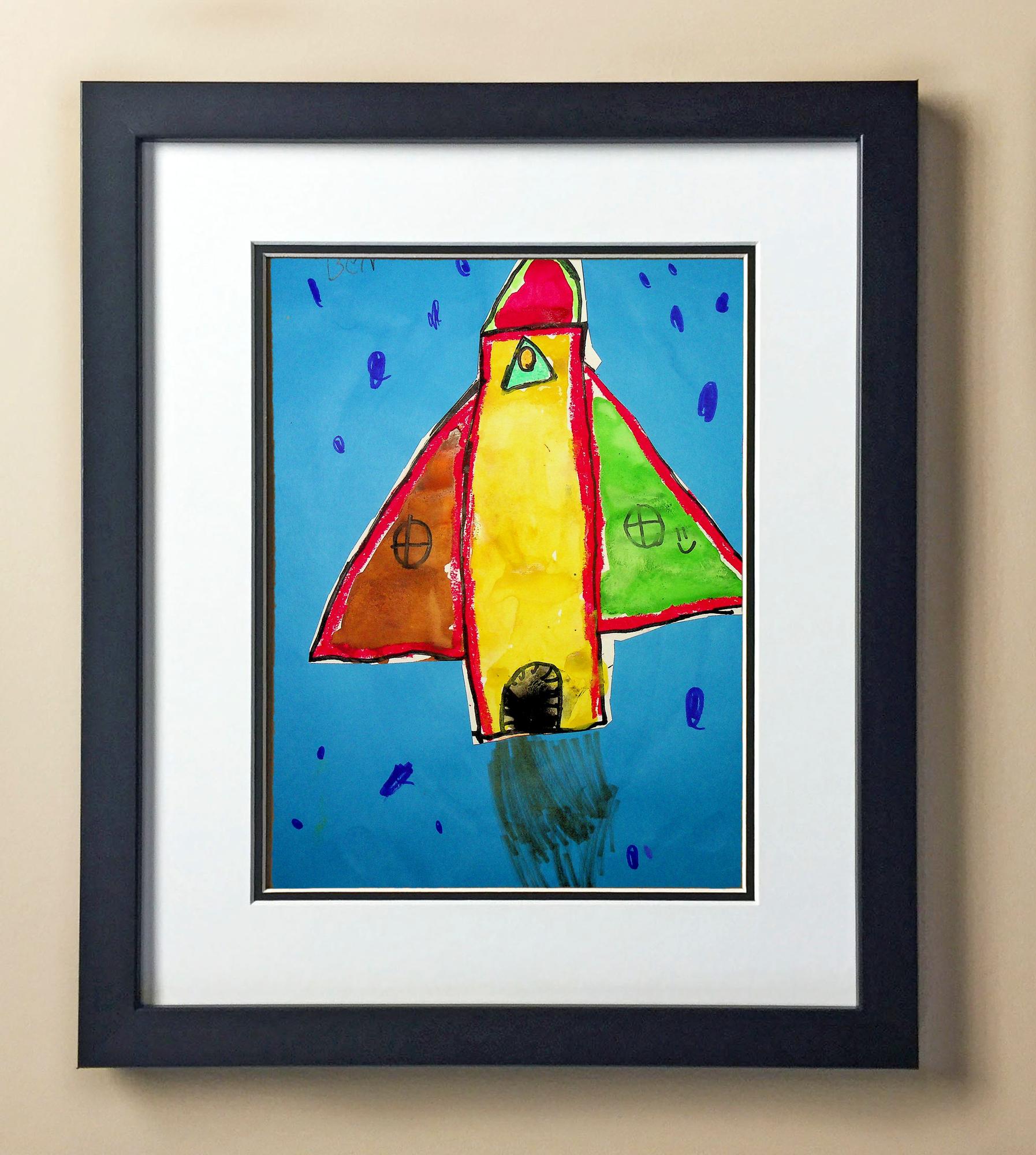 Included with the purchase is the Students Artwork, Frame, double matboard, shatter proof plexiglass, and a ready to hang backerboard with turnbuttons