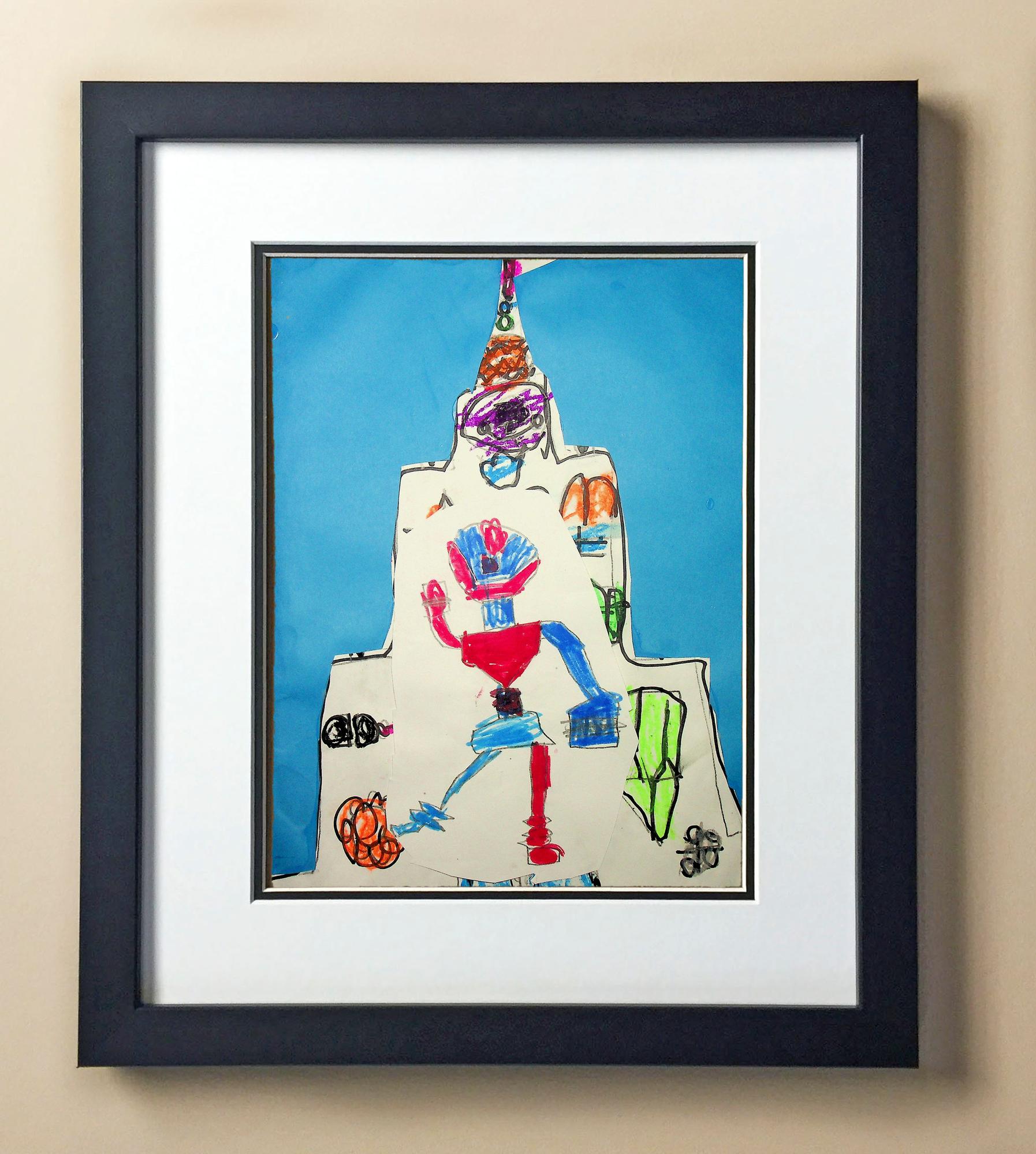 Included with the purchase is the Students Artwork, Frame, double matboard, shatter proof plexiglass, and a ready to hang backerboard with turnbuttons