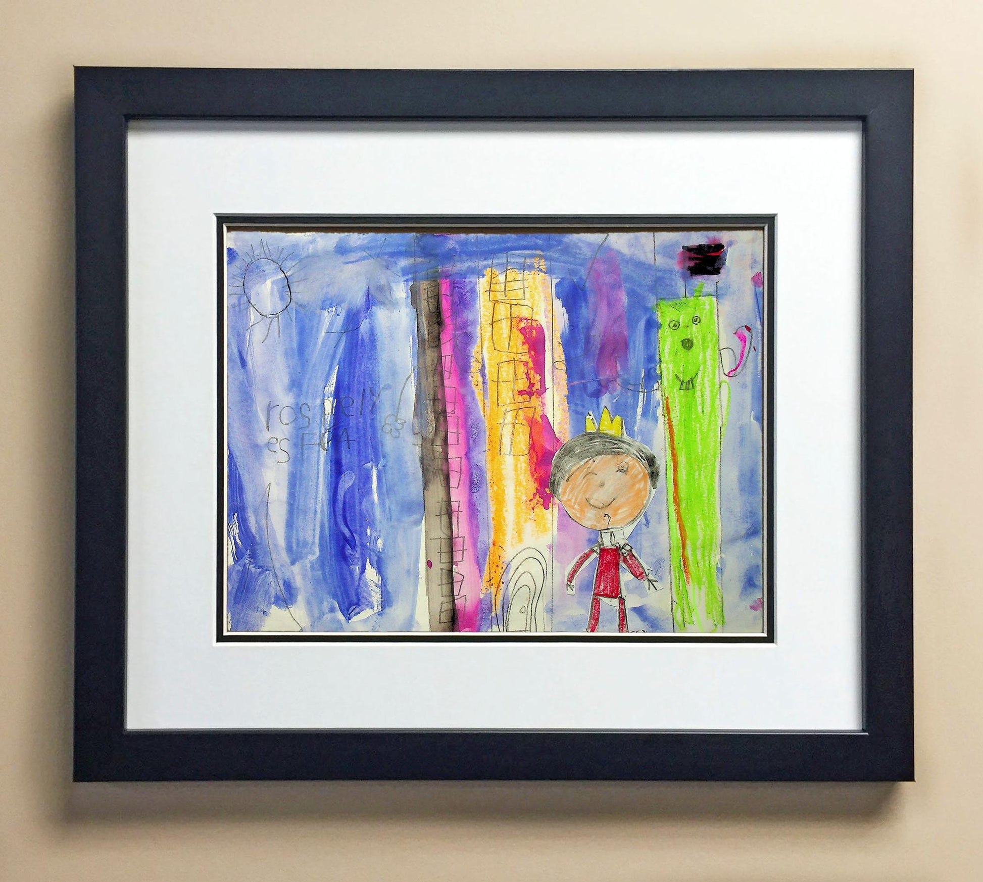 Included with the purchase is the Students Artwork, Frame, double matboard, shatter proof plexiglass, and a ready to hang backerboard with turnbuttons