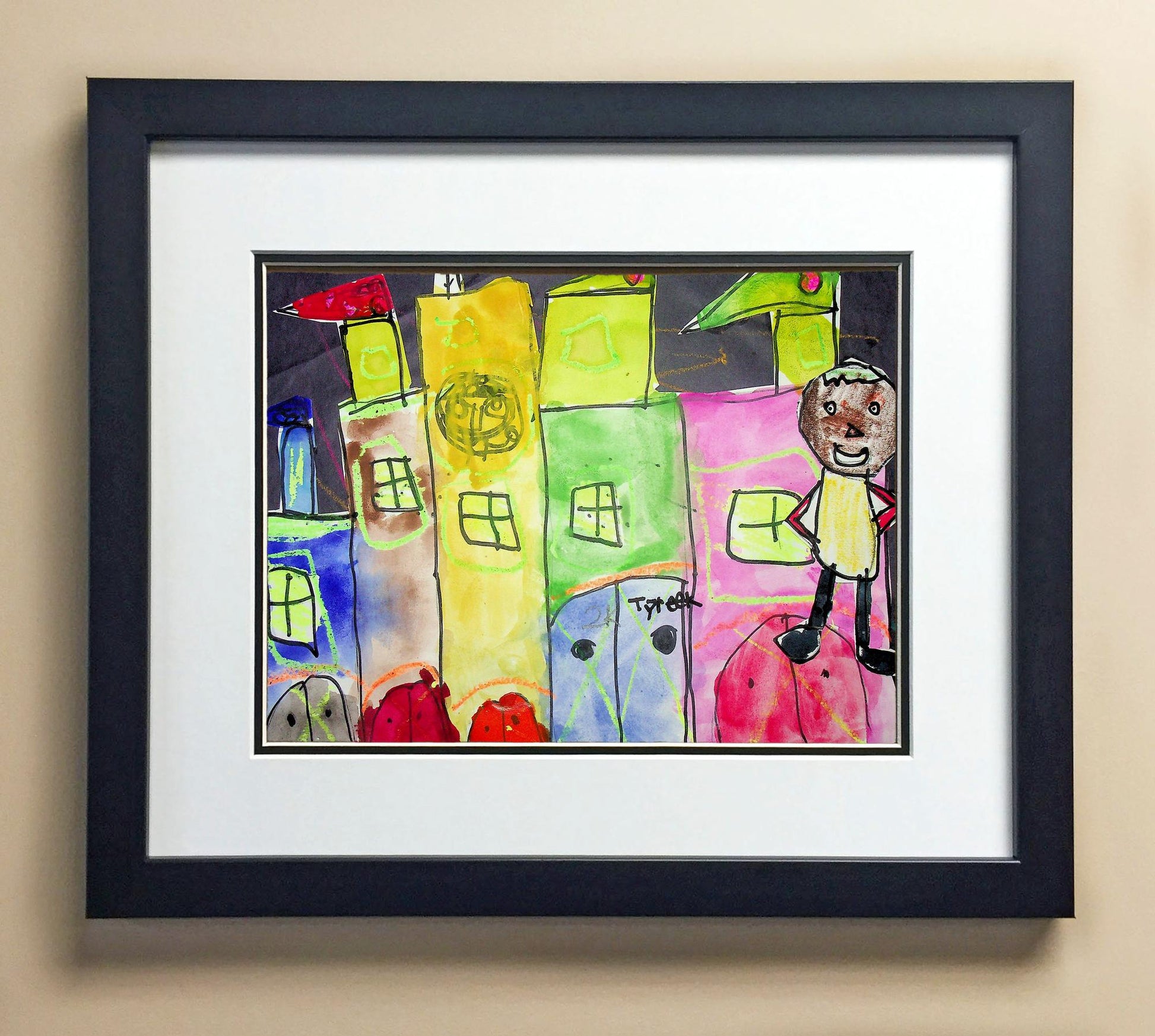 Included with the purchase is the Students Artwork, Frame, double matboard, shatter proof plexiglass, and a ready to hang backerboard with turnbuttons