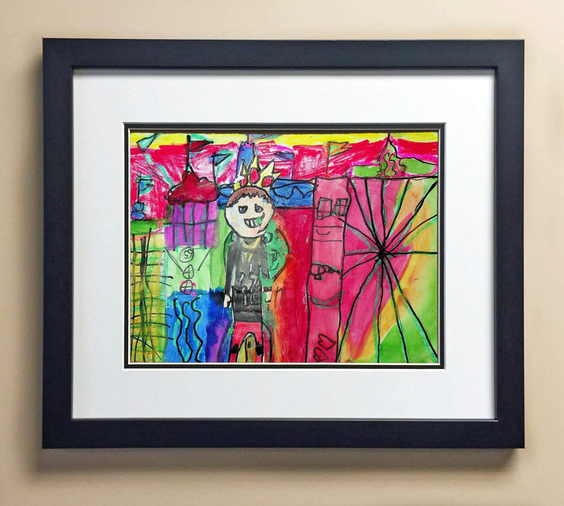 Included with the purchase is the Students Artwork, Frame, double matboard, shatter proof plexiglass, and a ready to hang backerboard with turnbuttons