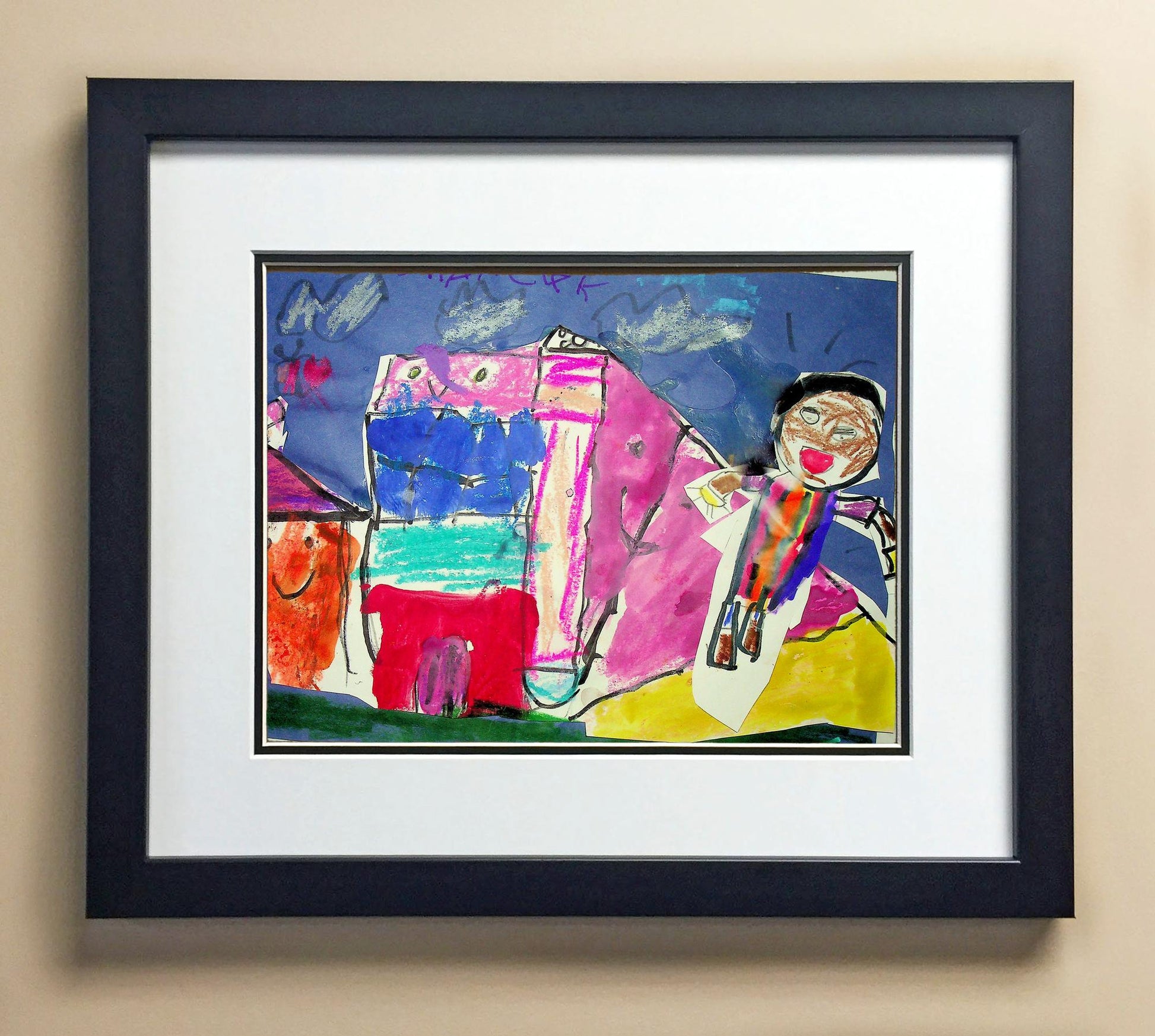 Included with the purchase is the Students Artwork, Frame, double matboard, shatter proof plexiglass, and a ready to hang backerboard with turnbuttons