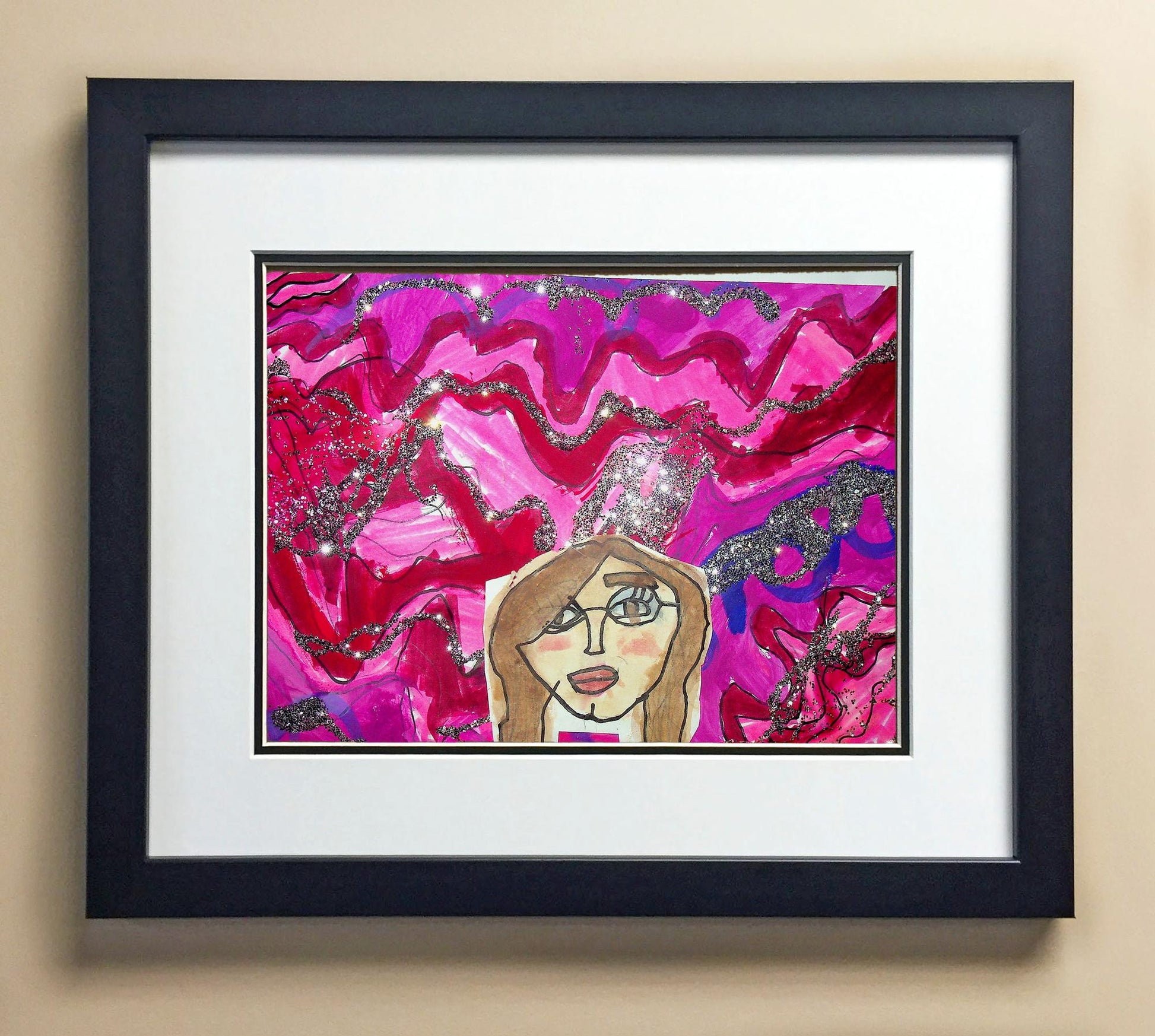 Included with the purchase is the Students Artwork, Frame, double matboard, shatter proof plexiglass, and a ready to hang backerboard with turnbuttons