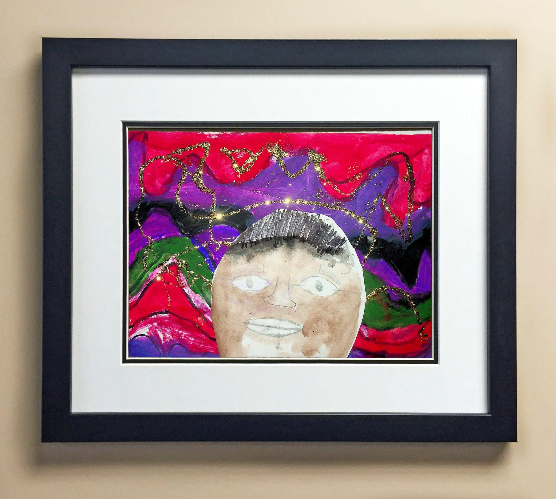 Included with the purchase is the Students Artwork, Frame, double matboard, shatter proof plexiglass, and a ready to hang backerboard with turnbuttons