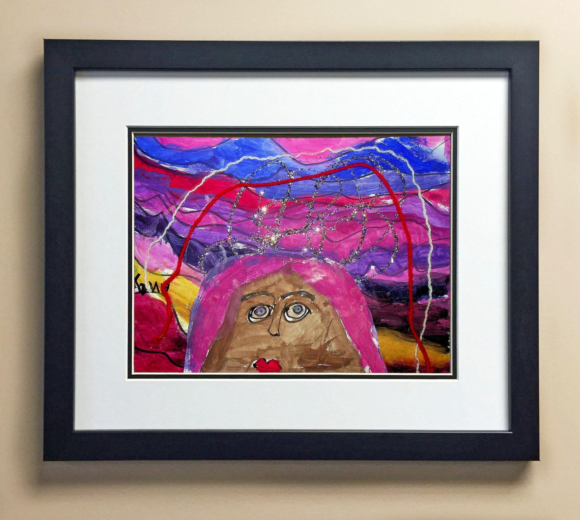 Included with the purchase is the Students Artwork, Frame, double matboard, shatter proof plexiglass, and a ready to hang backerboard with turnbuttons
