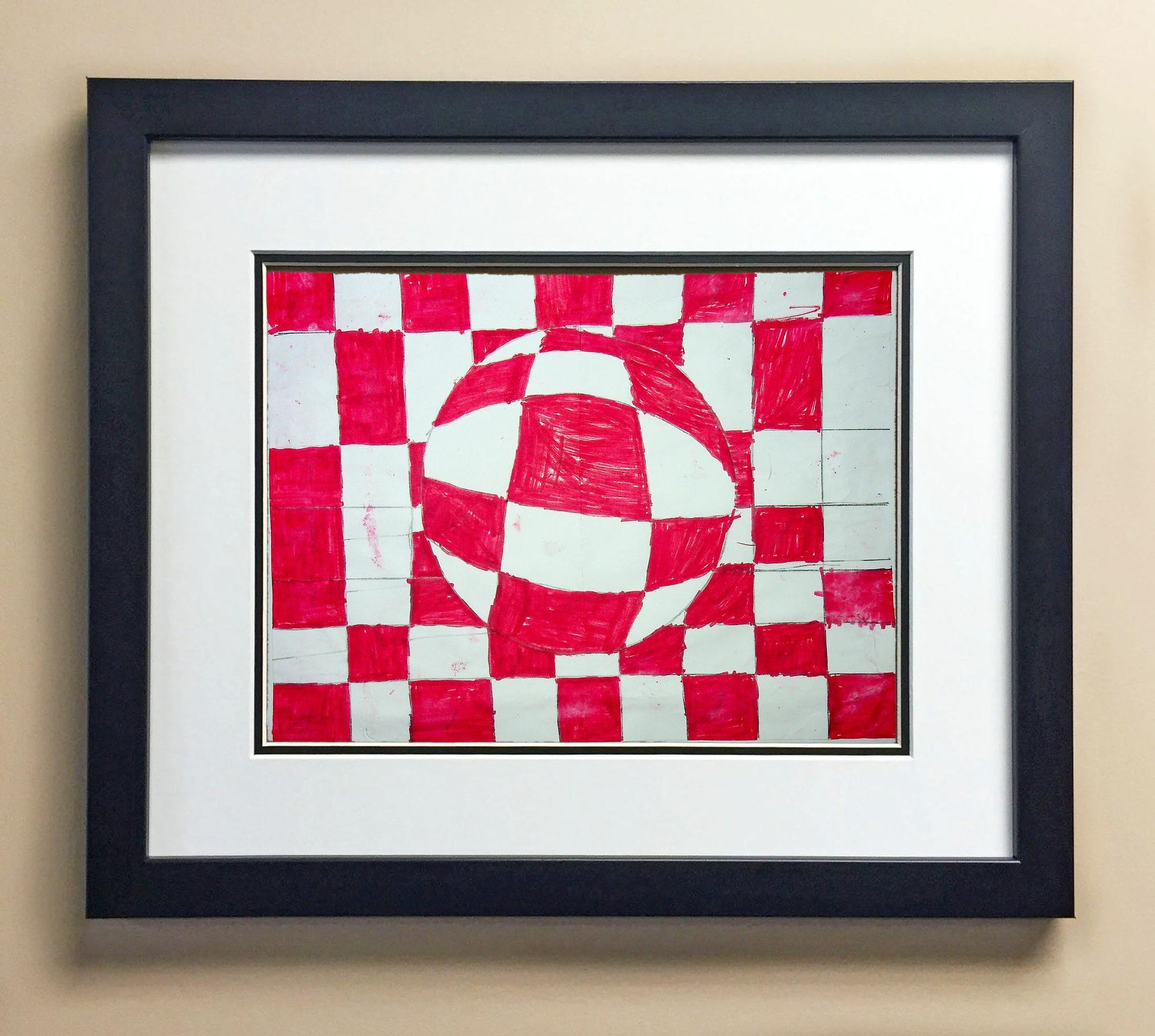 Included with the purchase is the Students Artwork, Frame, double matboard, shatter proof plexiglass, and a ready to hang backerboard with turnbuttons