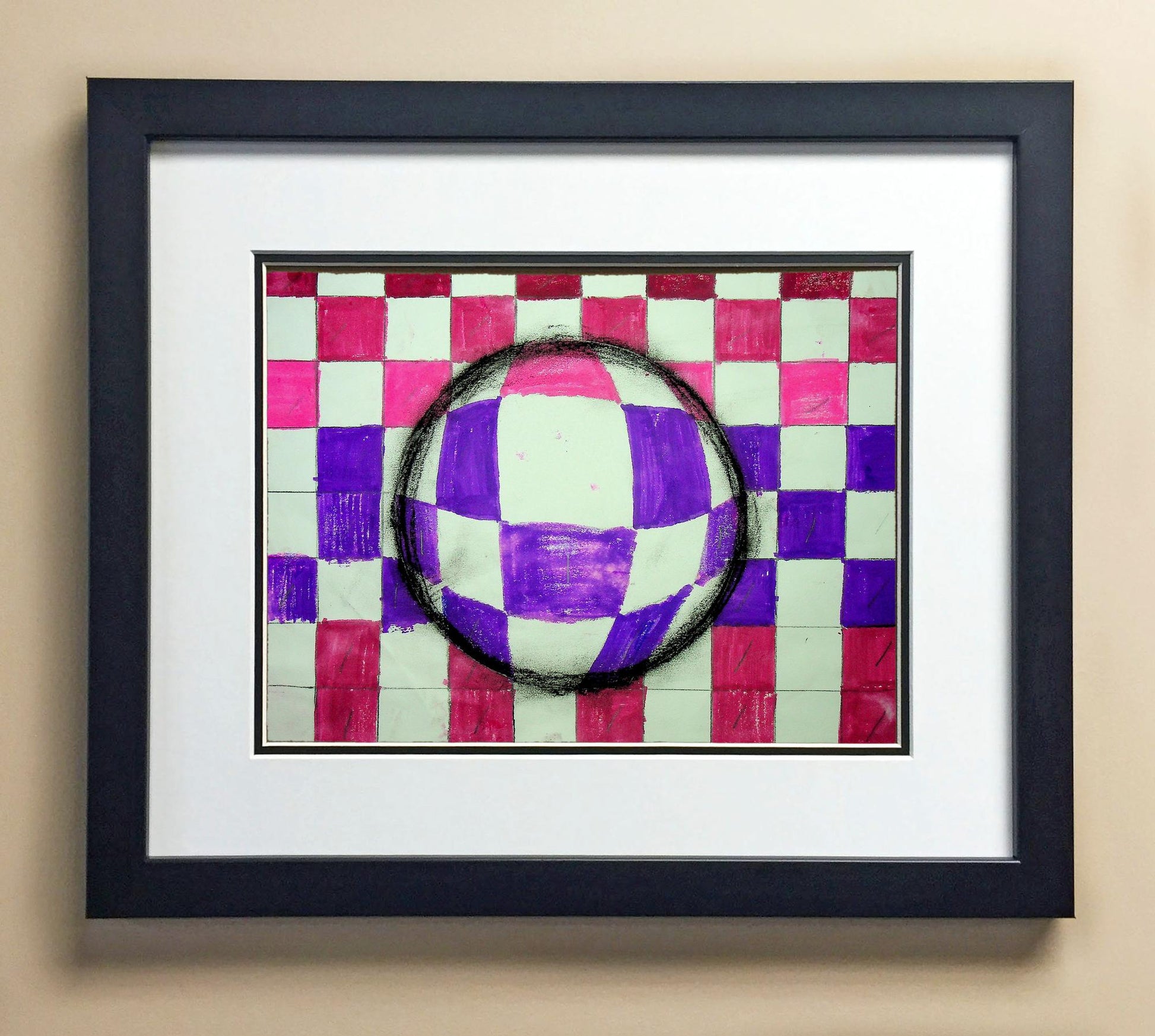 Included with the purchase is the Students Artwork, Frame, double matboard, shatter proof plexiglass, and a ready to hang backerboard with turnbuttons