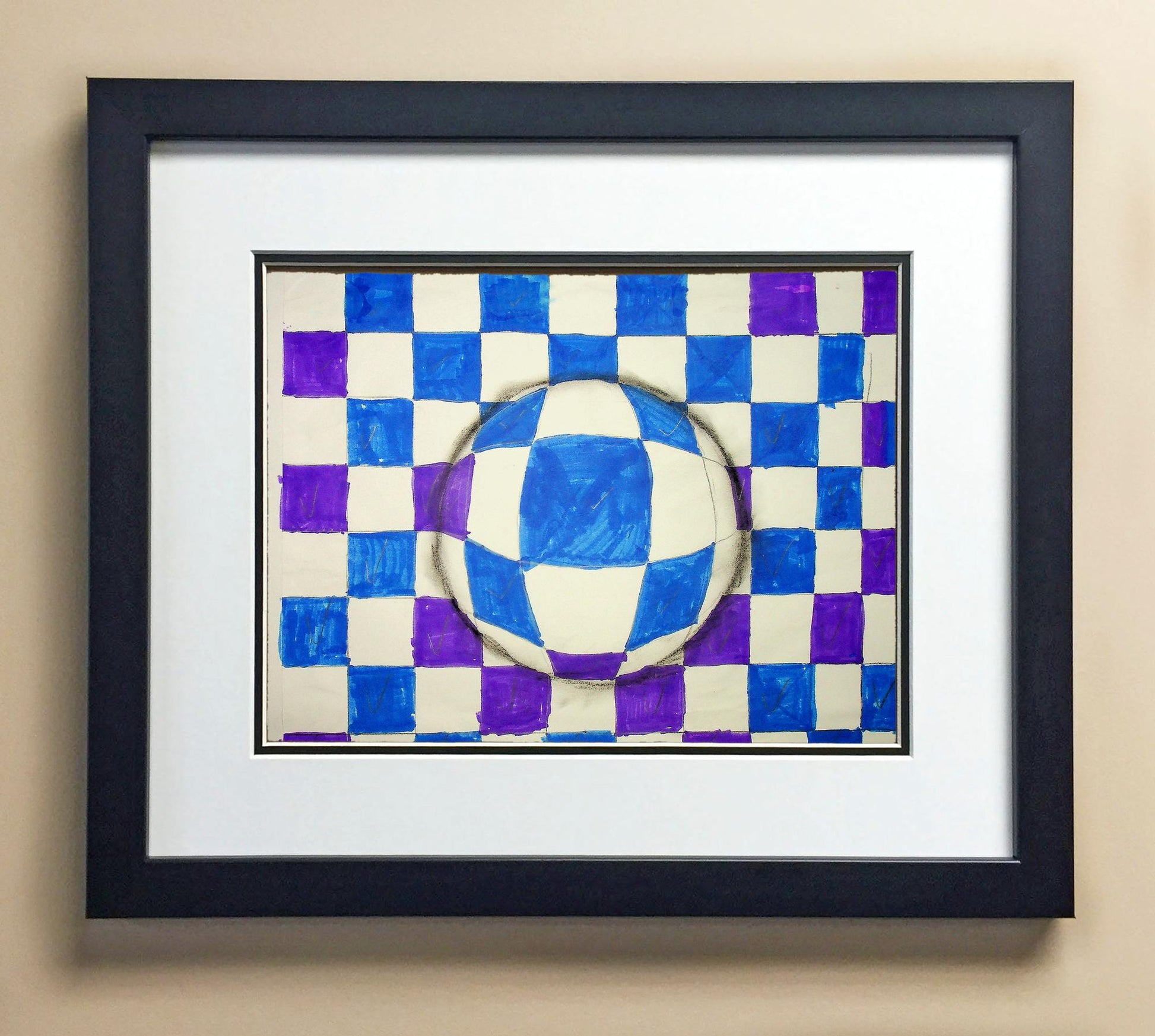 Included with the purchase is the Students Artwork, Frame, double matboard, shatter proof plexiglass, and a ready to hang backerboard with turnbuttons