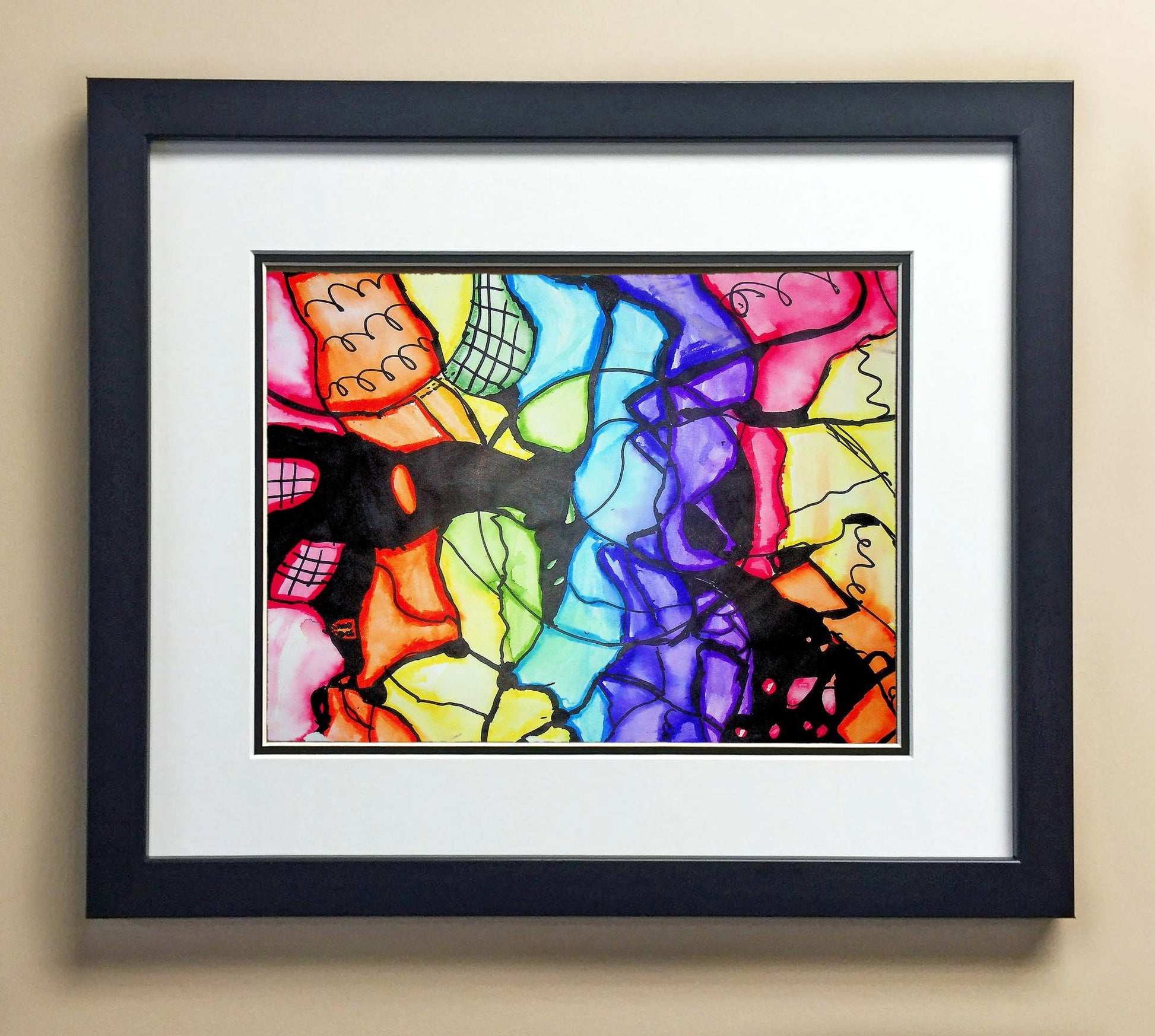 Included with the purchase is the Students Artwork, Frame, double matboard, shatter proof plexiglass, and a ready to hang backerboard with turnbuttons