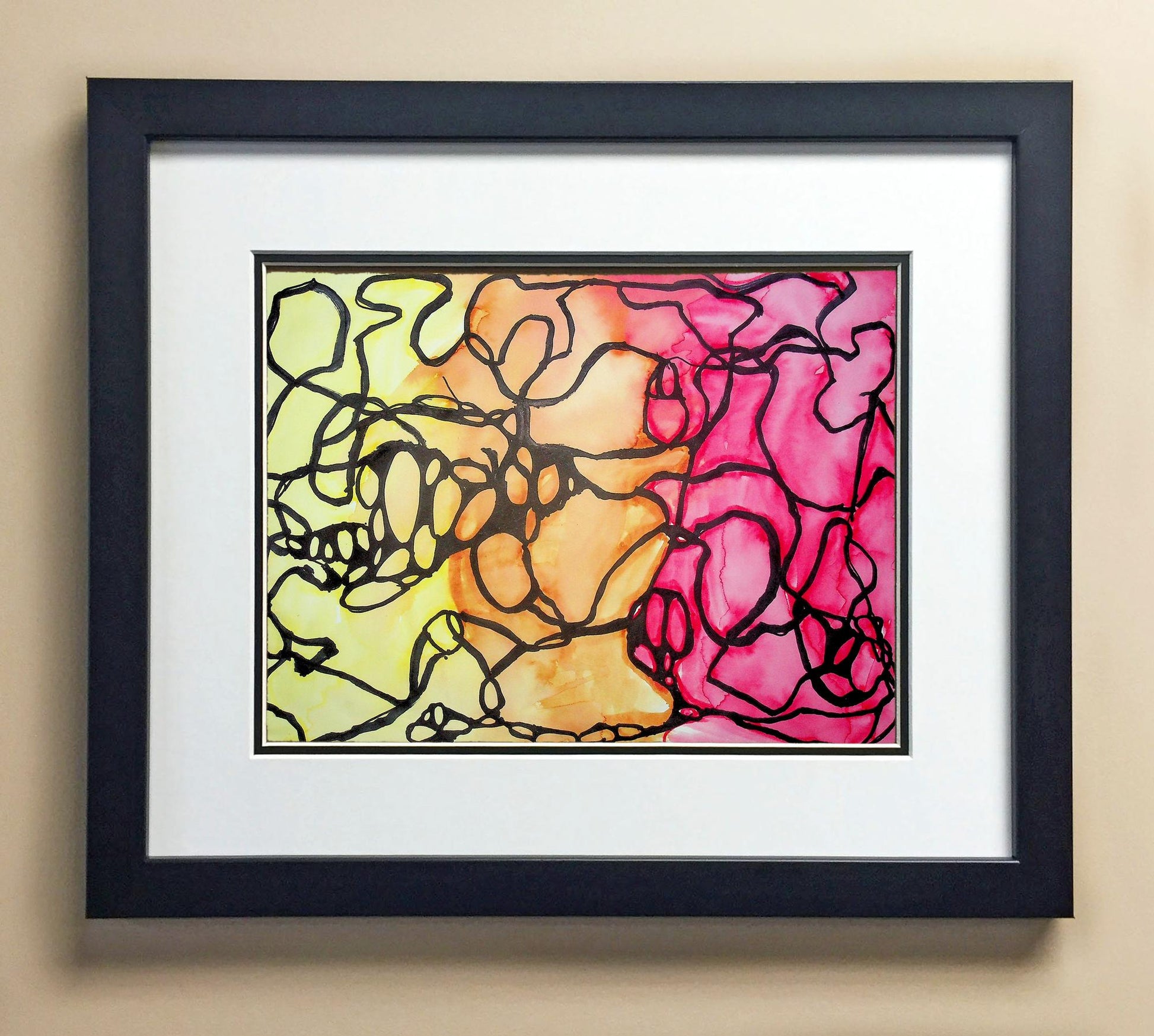Included with the purchase is the Students Artwork, Frame, double matboard, shatter proof plexiglass, and a ready to hang backerboard with turnbuttons