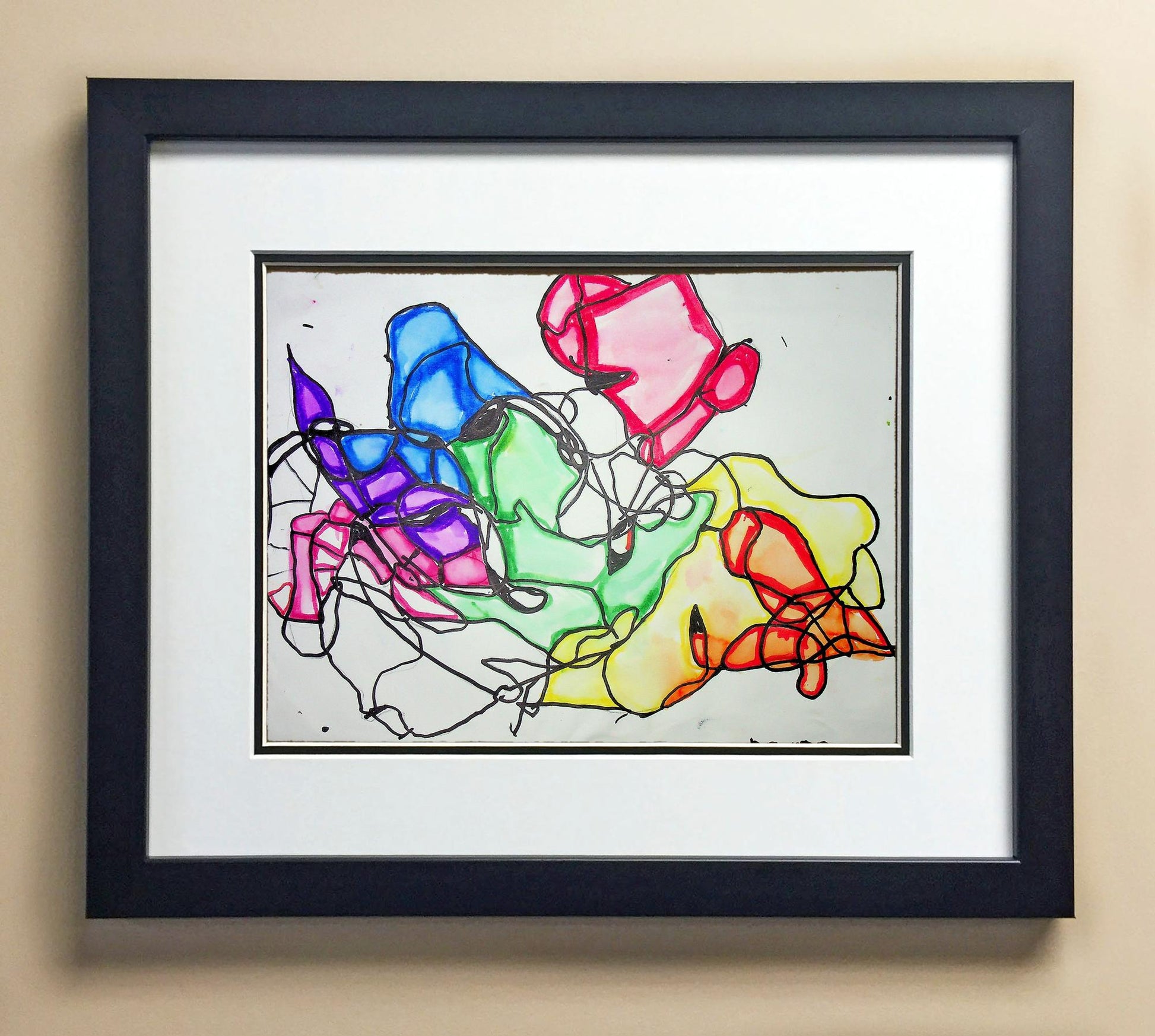 Included with the purchase is the Students Artwork, Frame, double matboard, shatter proof plexiglass, and a ready to hang backerboard with turnbuttons
