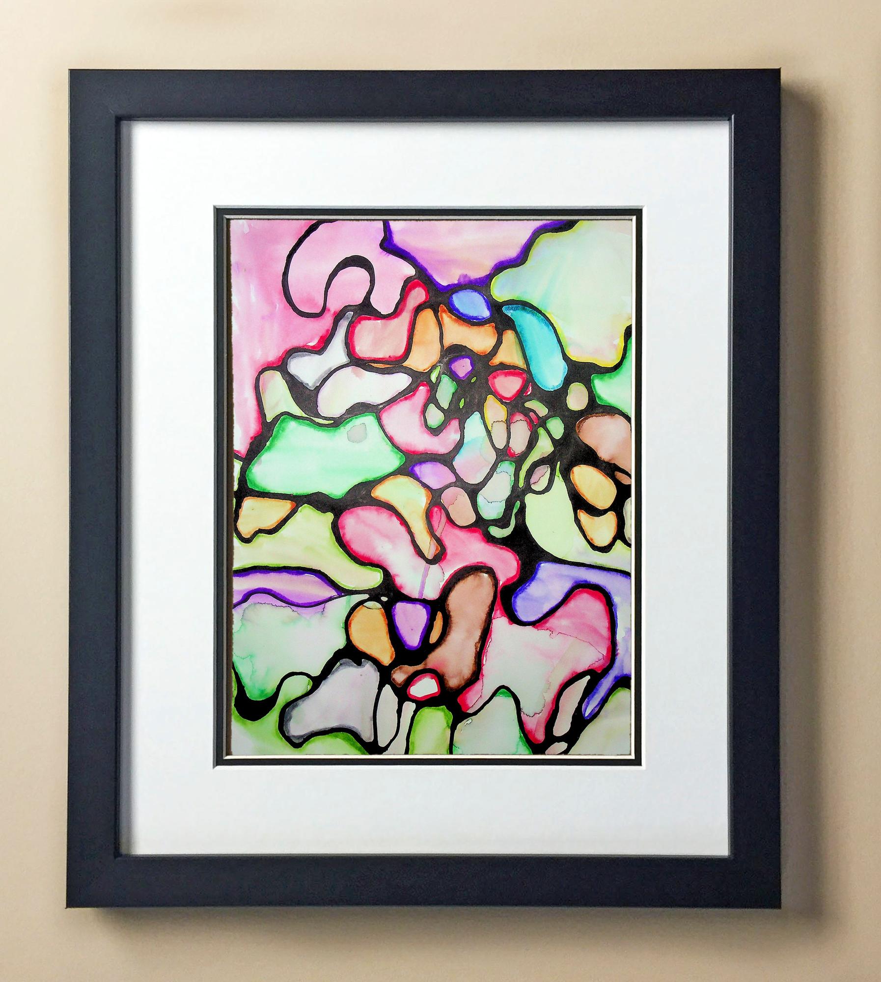 Included with the purchase is the Students Artwork, Frame, double matboard, shatter proof plexiglass, and a ready to hang backerboard with turnbuttons