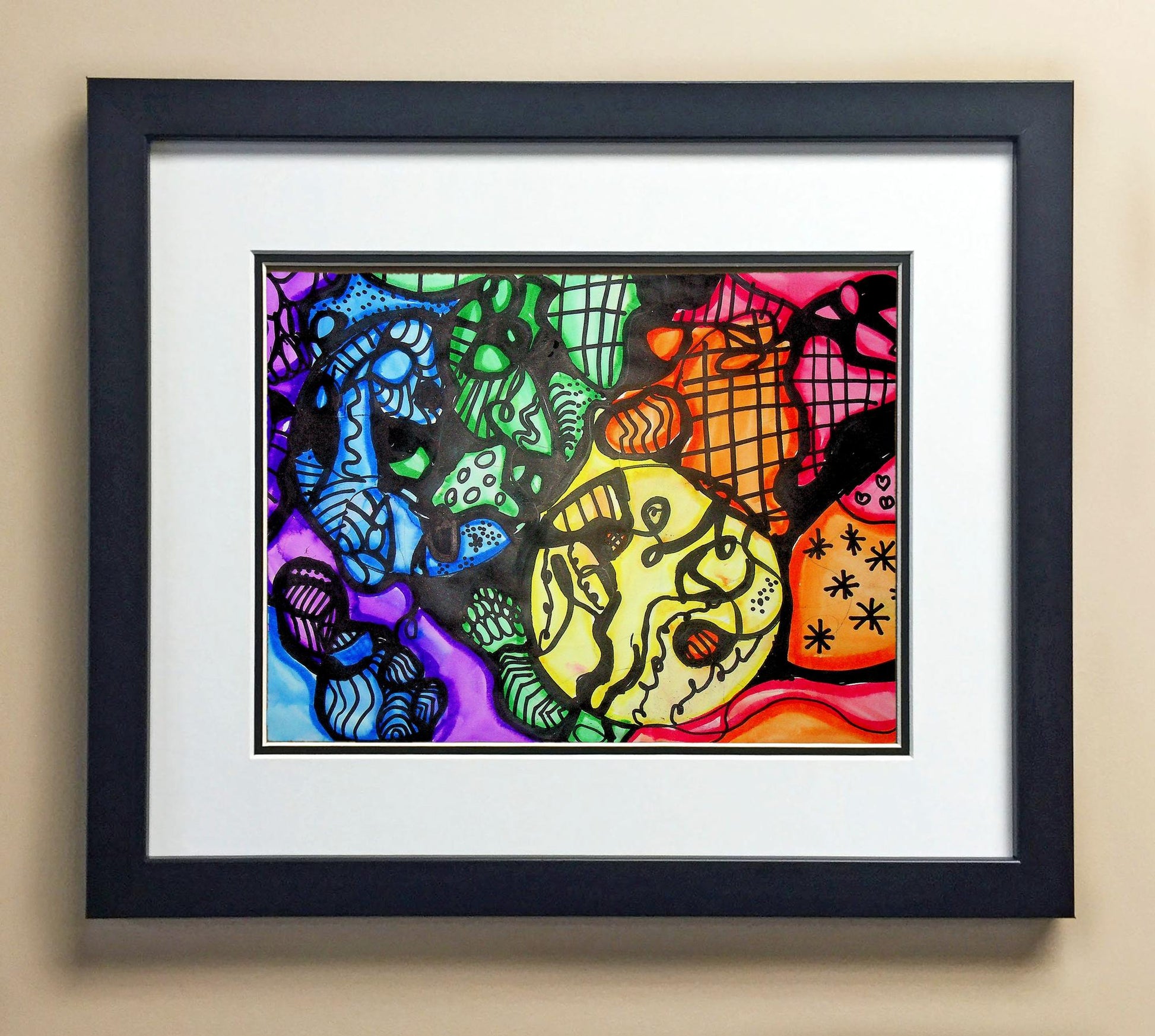 Included with the purchase is the Students Artwork, Frame, double matboard, shatter proof plexiglass, and a ready to hang backerboard with turnbuttons
