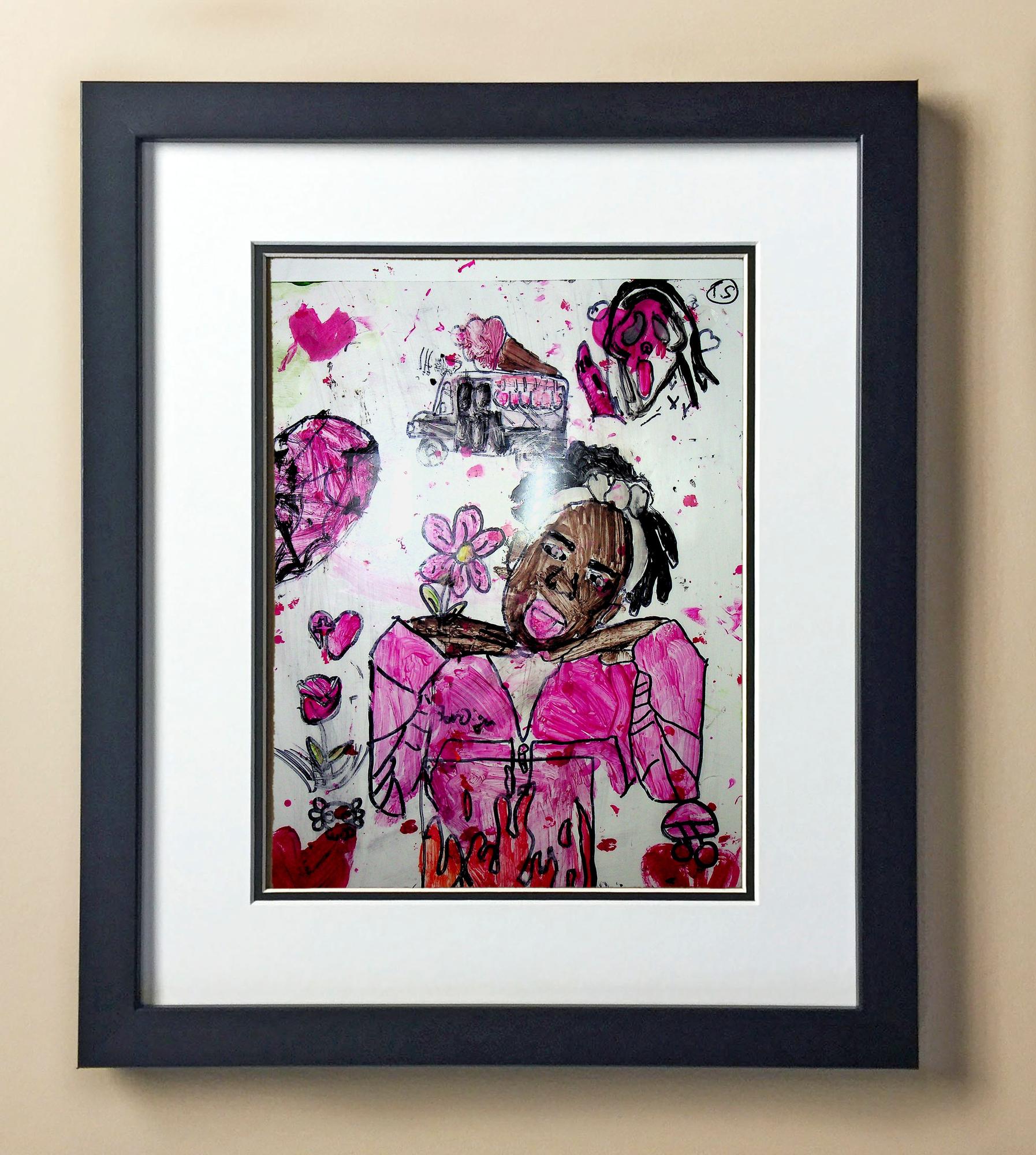 Included with the purchase is the Students Artwork, Frame, double matboard, shatter proof plexiglass, and a ready to hang backerboard with turnbuttons