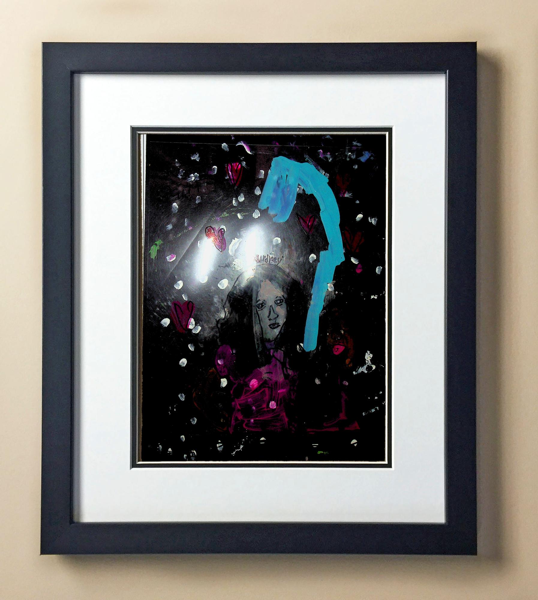 Included with the purchase is the Students Artwork, Frame, double matboard, shatter proof plexiglass, and a ready to hang backerboard with turnbuttons