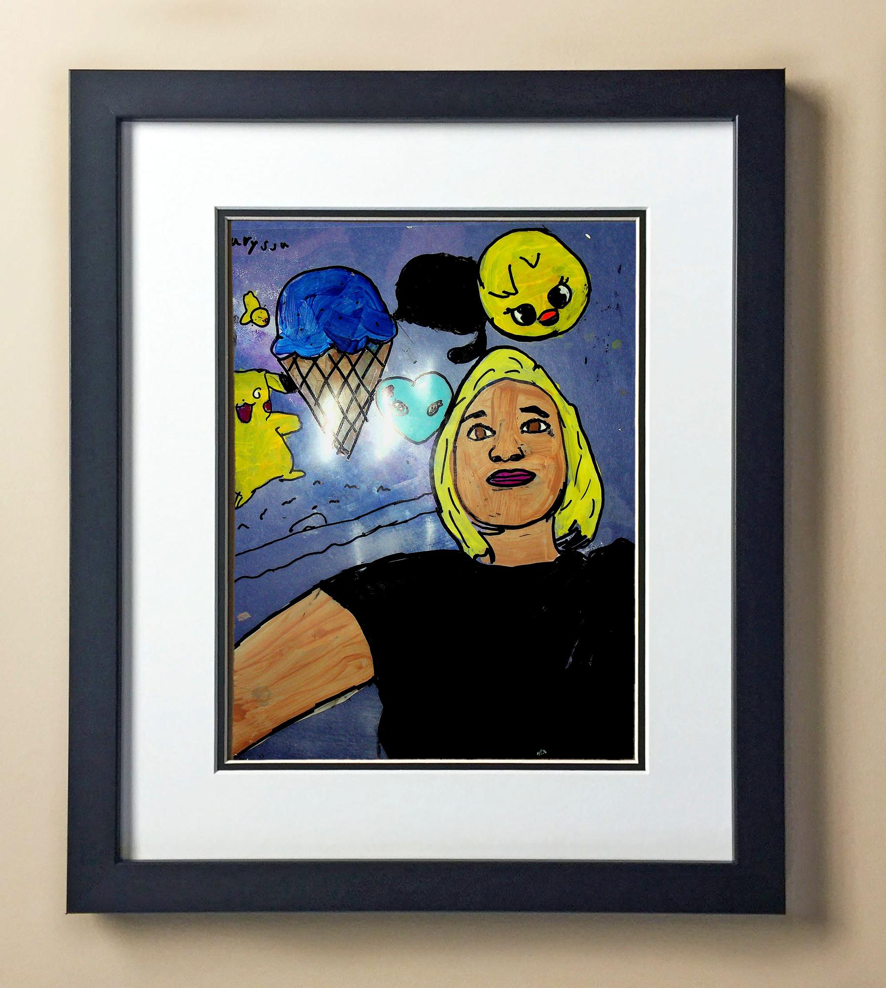 Included with the purchase is the Students Artwork, Frame, double matboard, shatter proof plexiglass, and a ready to hang backerboard with turnbuttons