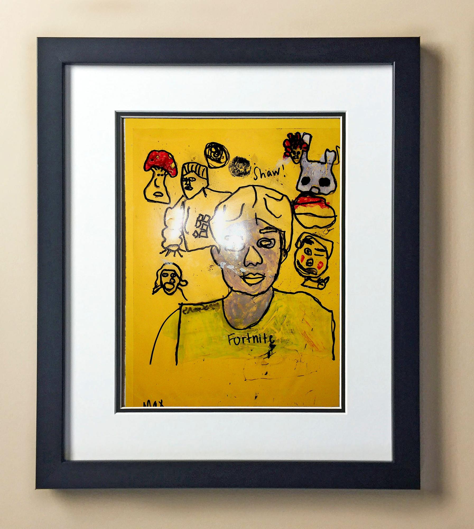 Included with the purchase is the Students Artwork, Frame, double matboard, shatter proof plexiglass, and a ready to hang backerboard with turnbuttons