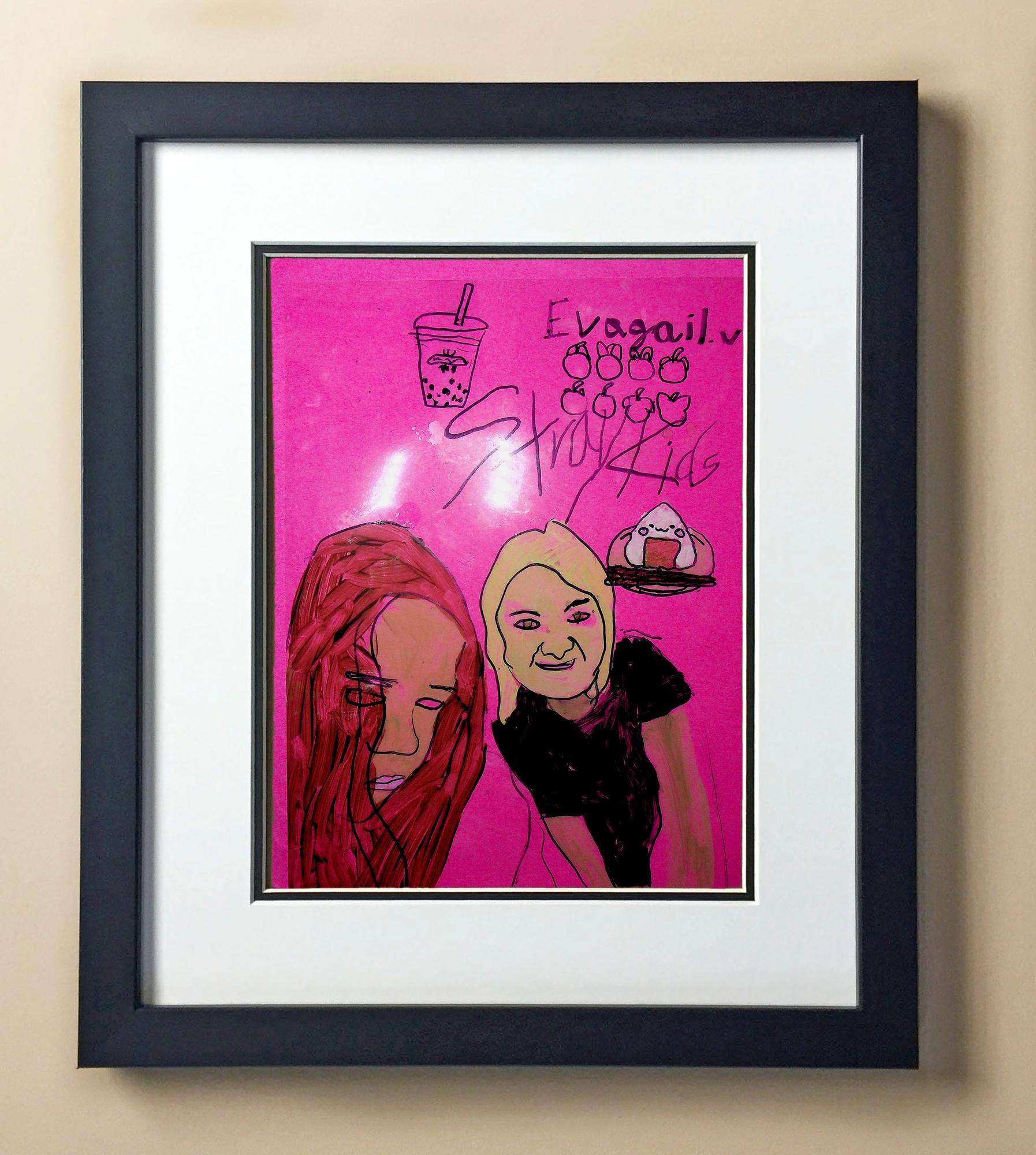 Included with the purchase is the Students Artwork, Frame, double matboard, shatter proof plexiglass, and a ready to hang backerboard with turnbuttons