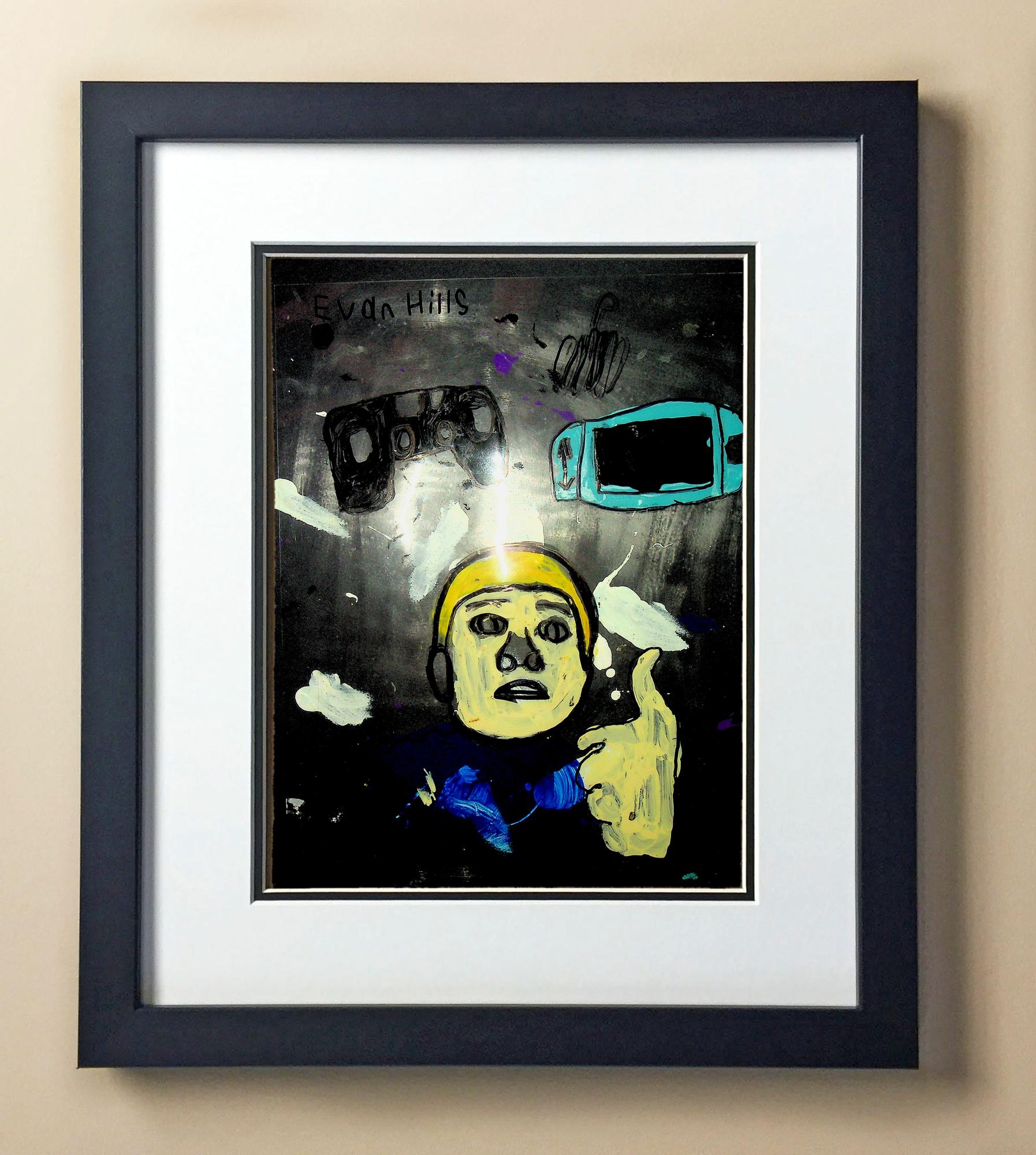Included with the purchase is the Students Artwork, Frame, double matboard, shatter proof plexiglass, and a ready to hang backerboard with turnbuttons