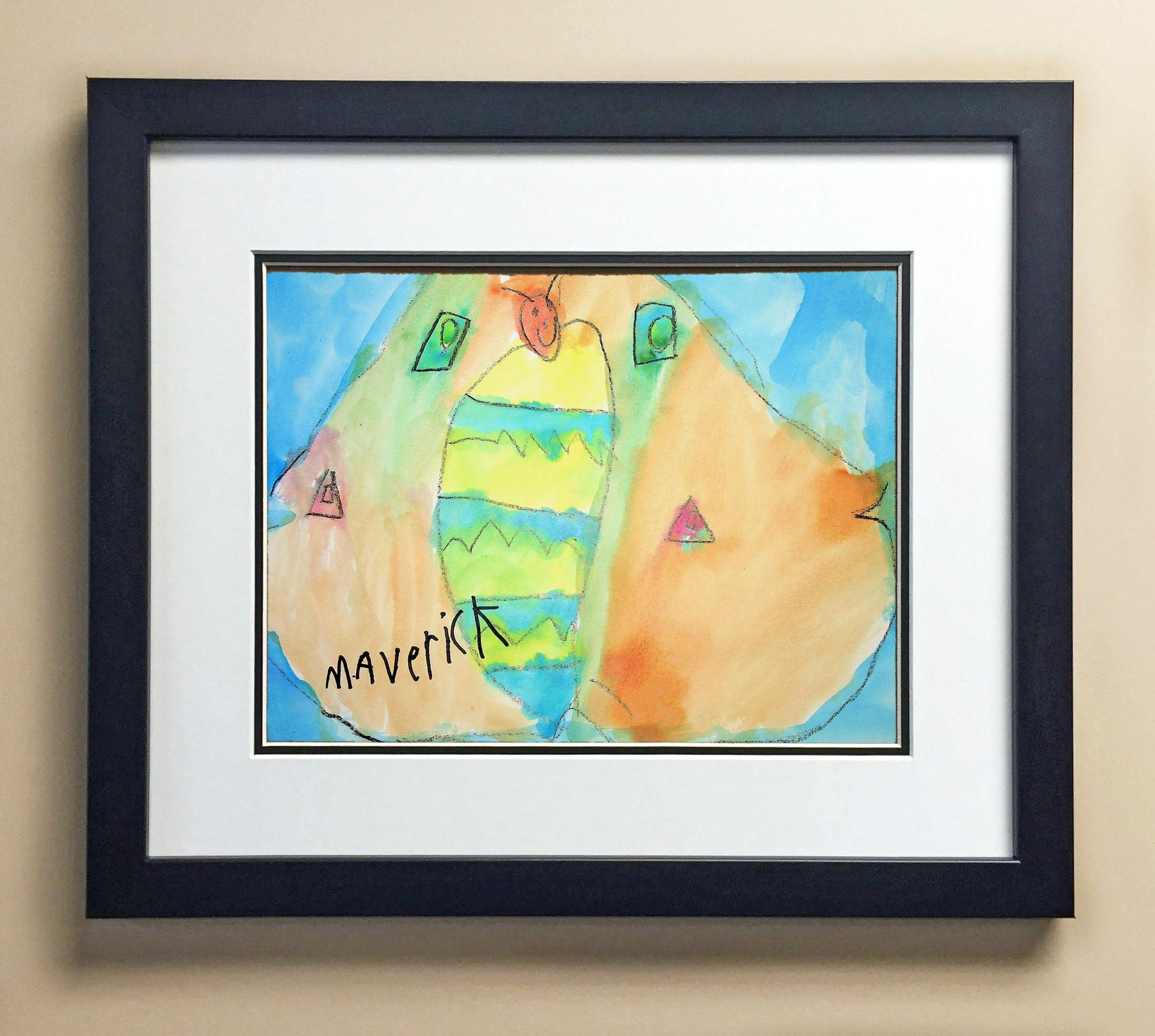 Included with the purchase is the Students Artwork, Frame, double matboard, shatter proof plexiglass, and a ready to hang backerboard with turnbuttons