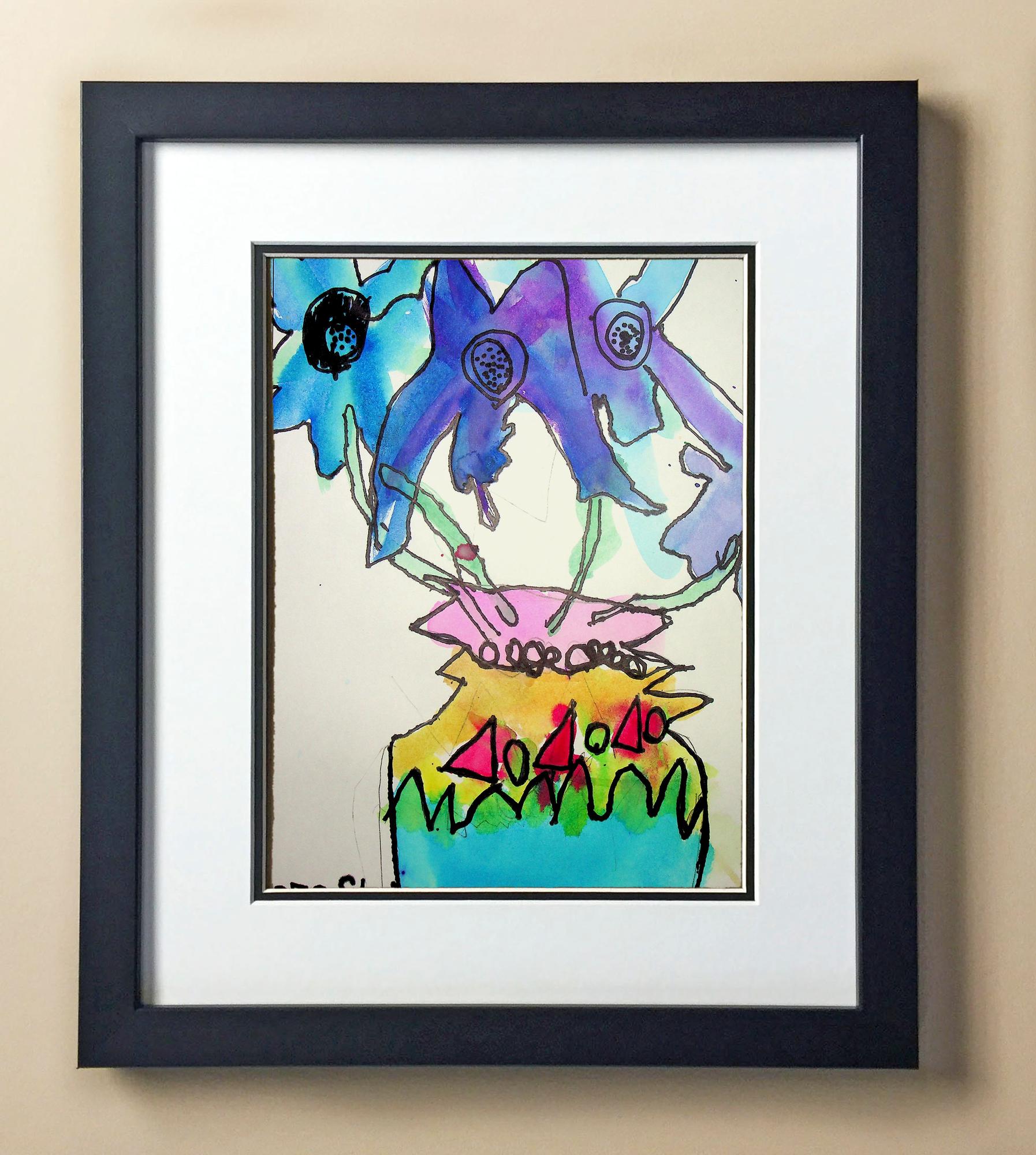 Included with the purchase is the Students Artwork, Frame, double matboard, shatter proof plexiglass, and a ready to hang backerboard with turnbuttons