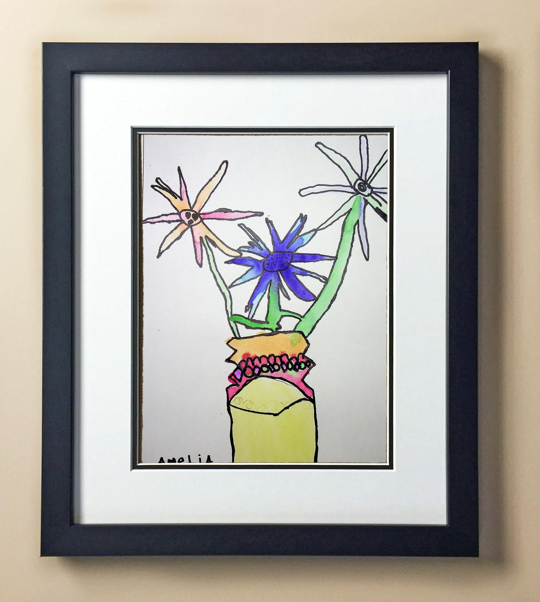 Included with the purchase is the Students Artwork, Frame, double matboard, shatter proof plexiglass, and a ready to hang backerboard with turnbuttons