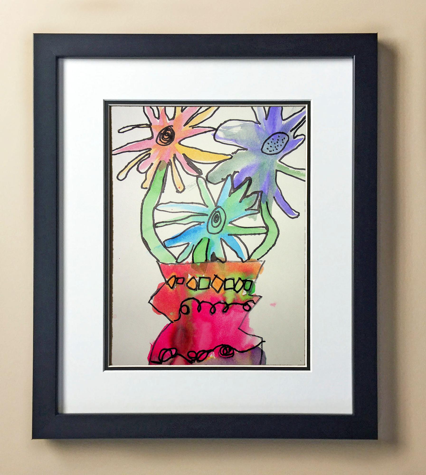 Included with the purchase is the Students Artwork, Frame, double matboard, shatter proof plexiglass, and a ready to hang backerboard with turnbuttons