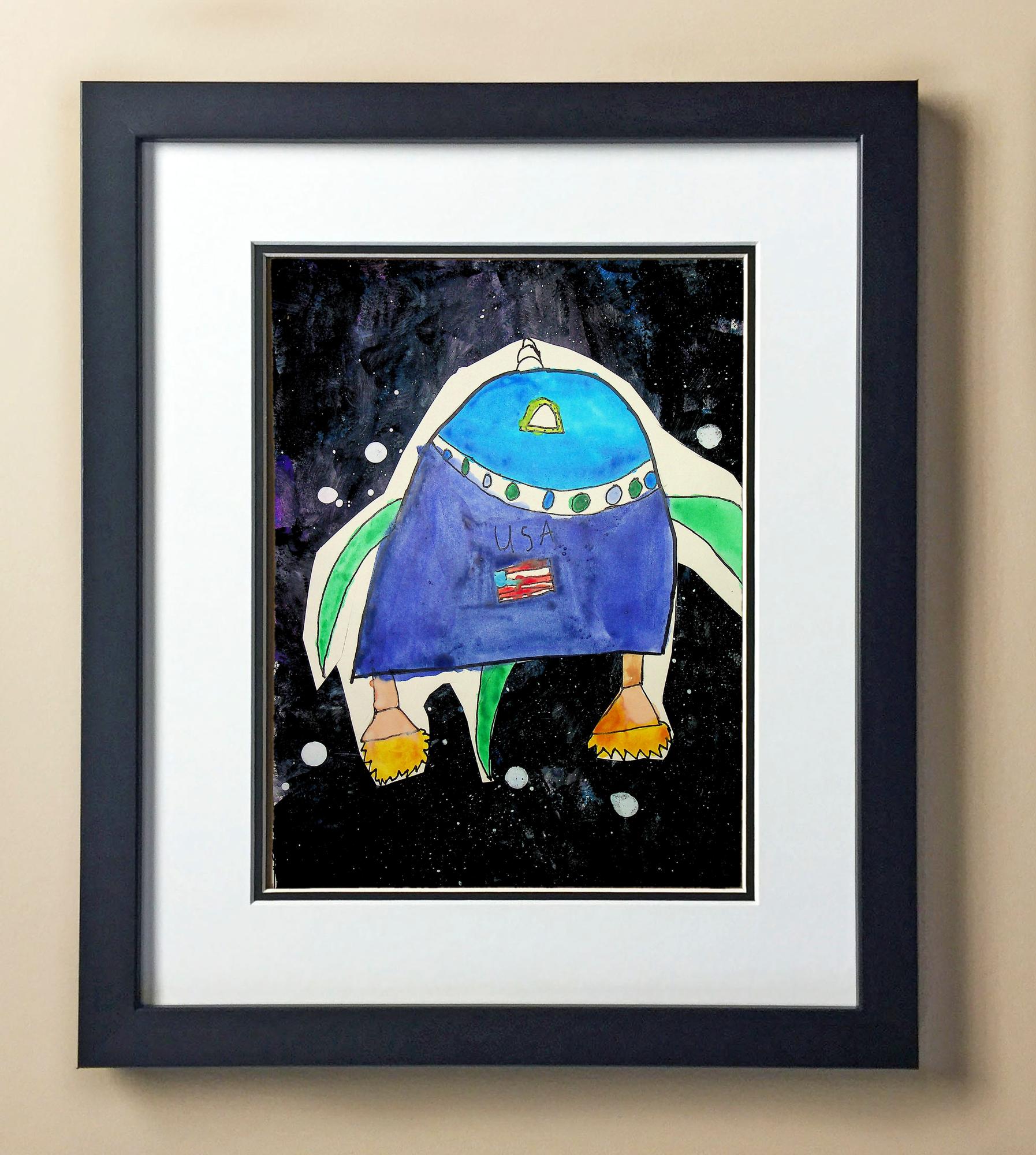 Included with the purchase is the Students Artwork, Frame, double matboard, shatter proof plexiglass, and a ready to hang backerboard with turnbuttons