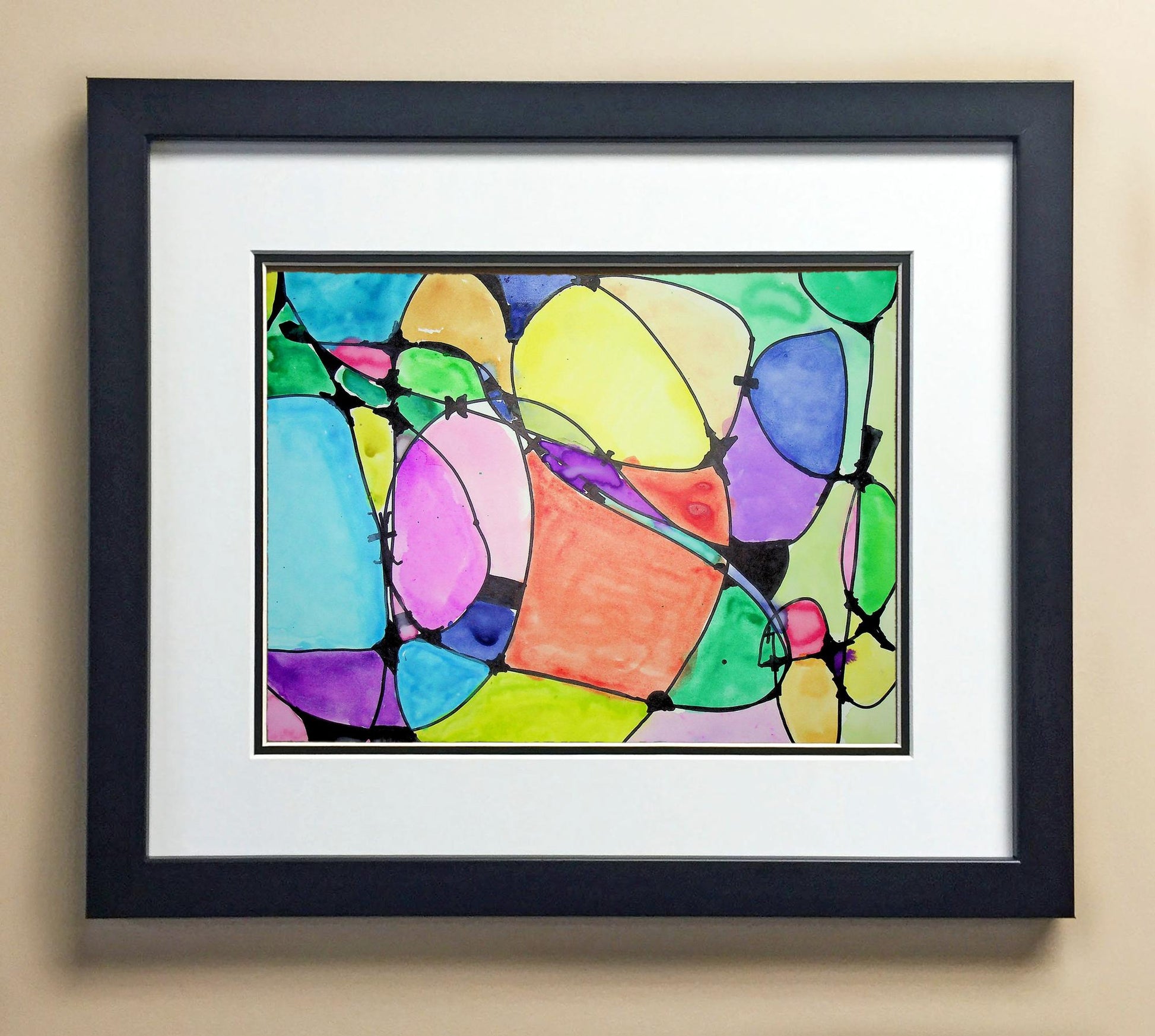 Included with the purchase is the Students Artwork, Frame, double matboard, shatter proof plexiglass, and a ready to hang backerboard with turnbuttons