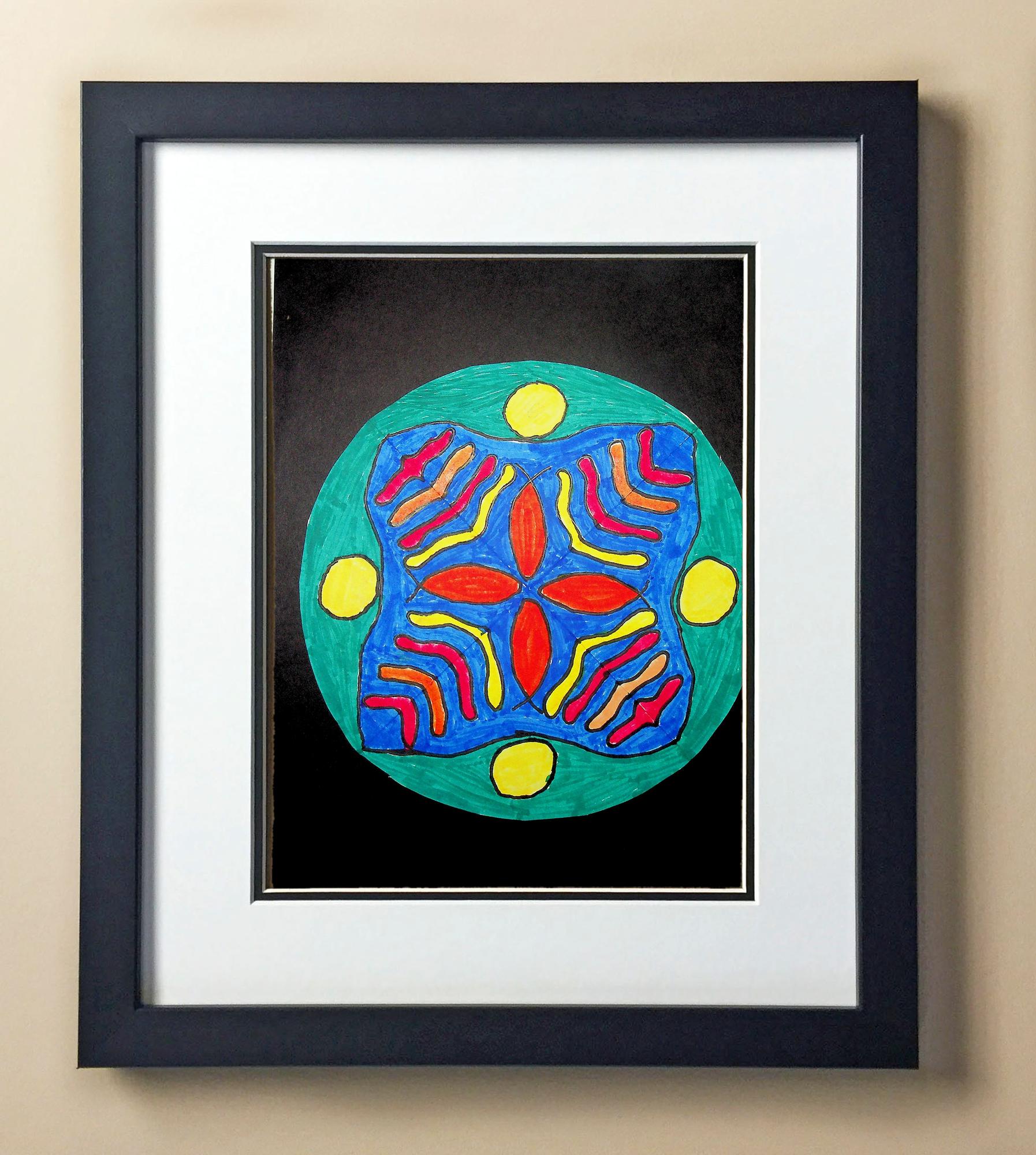 Included with the purchase is the Students Artwork, Frame, double matboard, shatter proof plexiglass, and a ready to hang backerboard with turnbuttons