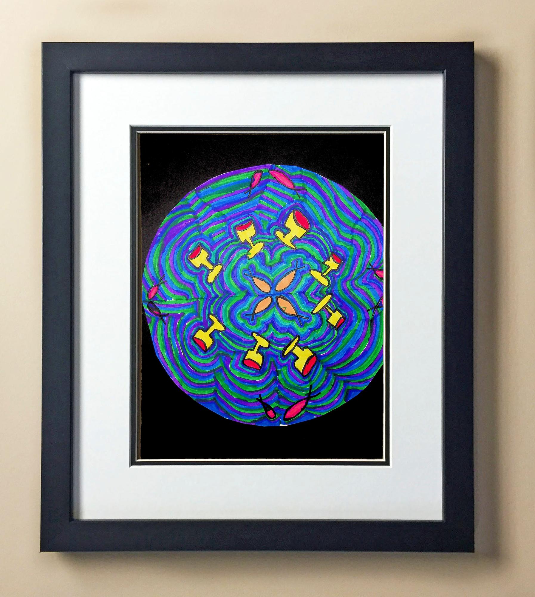 Included with the purchase is the Students Artwork, Frame, double matboard, shatter proof plexiglass, and a ready to hang backerboard with turnbuttons