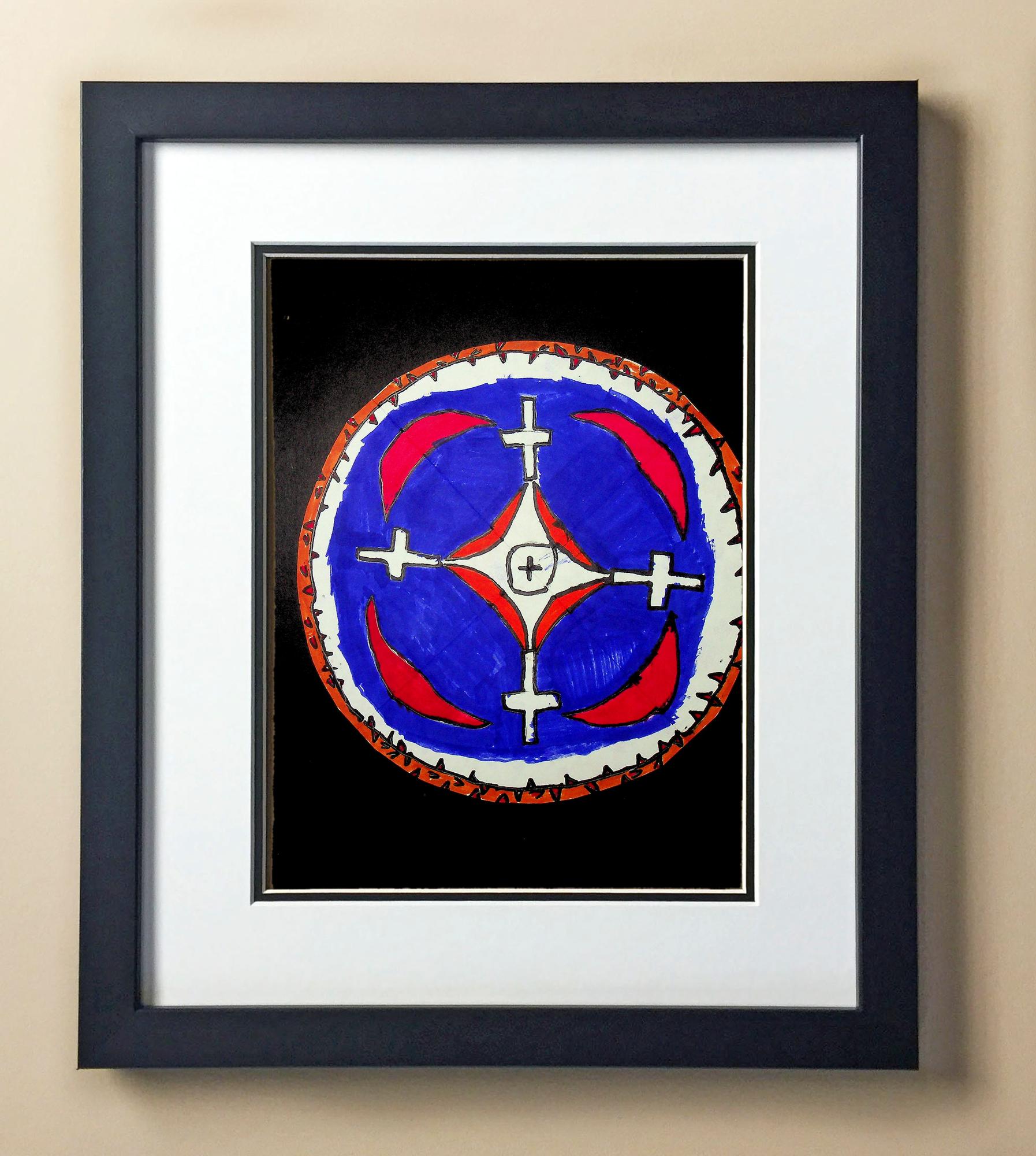 Included with the purchase is the Students Artwork, Frame, double matboard, shatter proof plexiglass, and a ready to hang backerboard with turnbuttons