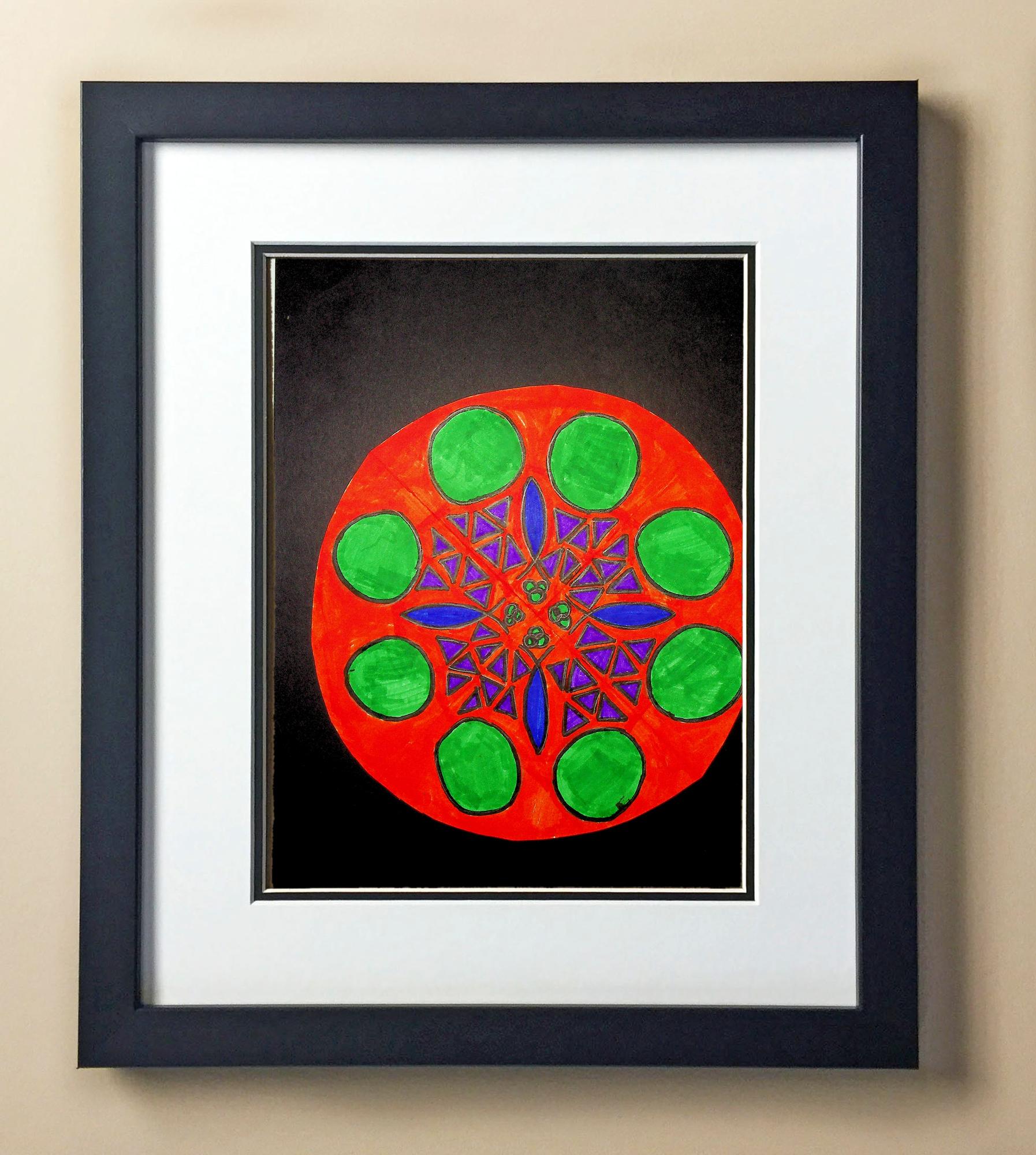 Included with the purchase is the Students Artwork, Frame, double matboard, shatter proof plexiglass, and a ready to hang backerboard with turnbuttons