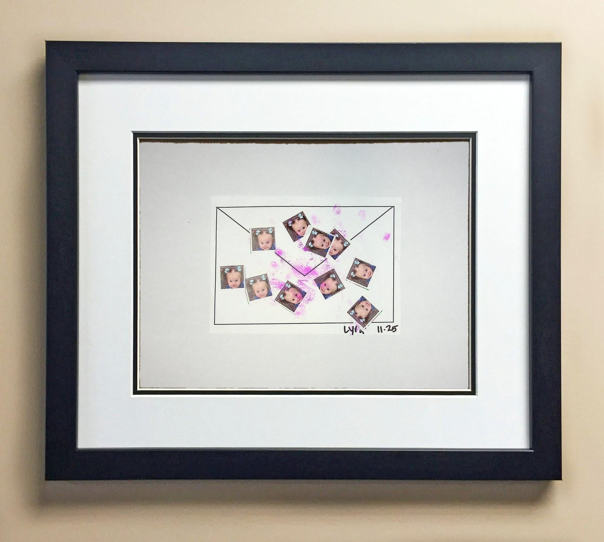 Included with the purchase is the Students Artwork, Frame, double matboard, shatter proof plexiglass, and a ready to hang backerboard with turnbuttons