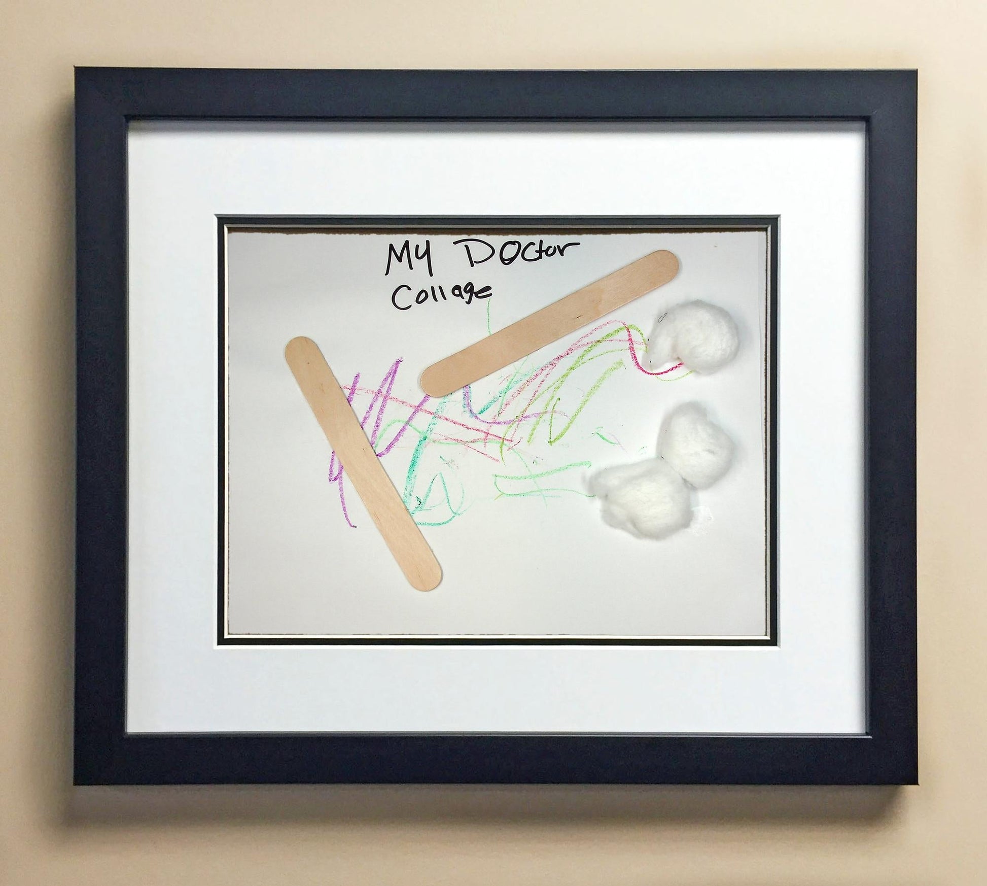 Included with the purchase is the Students Artwork, Frame, double matboard, shatter proof plexiglass, and a ready to hang backerboard with turnbuttons